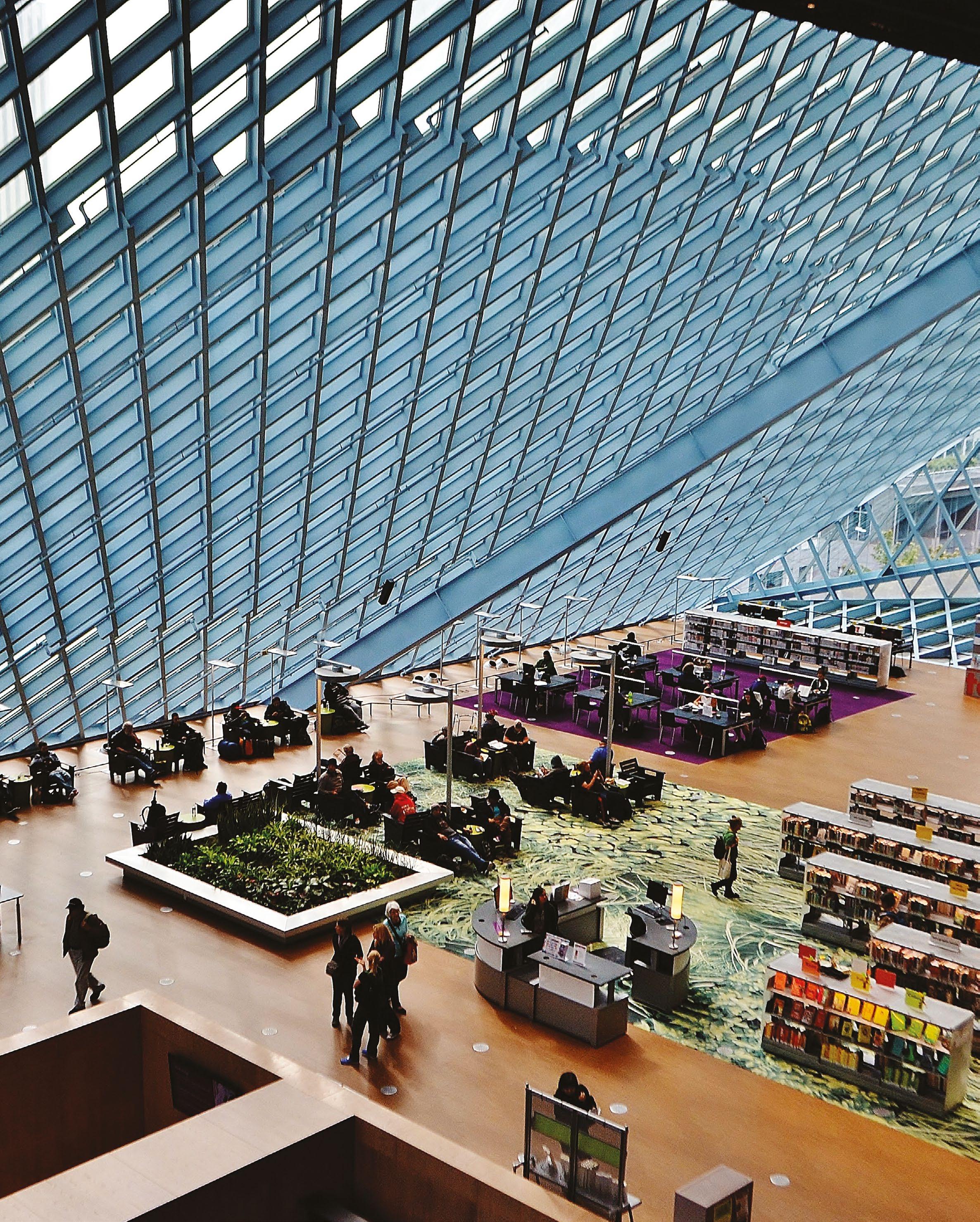The Seattle Central Library was completed and opened in 2004. It was designed by Rem Koolhaas and his firm OMA as part of a major redevelopment of Seattle’s public library system.