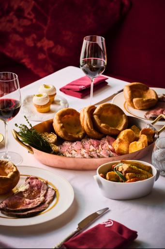 For the main course, the dramatic tableside carving of Chargrilled Tomahawk Steak takes centre stage, served straight from the trolley. Other highlights include Josper-Grilled Hanger Steak, Twice-Cooked Baby Chicken with leavened bread, Roasted Seabass with pistachio-olive dressing, and a hearty Shepherd’s Pie. Vegetarians can enjoy the Josper-Grilled Cauliflower Steak.