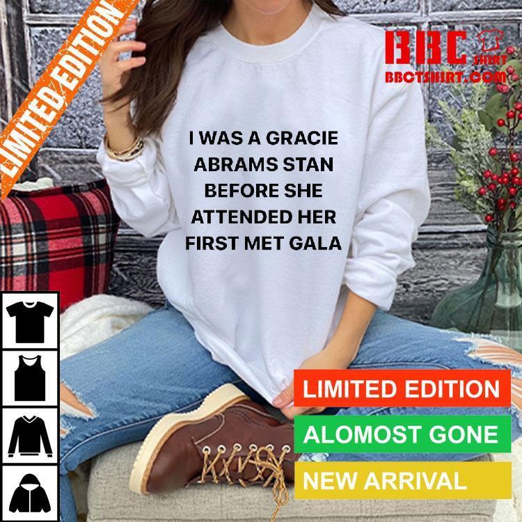 Chicminimalism,everydaywear withIWasAGracieAbramsStan BeforeSheAttendedHerFirstMet GalaShirt,asalongtimeGracie Abramsfan,Inevercouldhave imaginedthedayshewouldattend herveryfirstMetGala.Fromher rawandemotionallyricstoher uniquefashionsense,Iwasastan beforesheevensteppedfootonthe iconicredcarpetinherstunning ensemble.IWasAGracieAbrams StanBeforeSheAttendedHerFirst MetGalaTshirtIWasAGracie AbramsStanBeforeSheAttended HerFirstMetGalaTshirtIWasA GracieAbramsStanBeforeShe AttendedHerFirstMetGalaTshirt Thisproductisourbestseller becauseit'srelaxed,tailoredand ultra-comfortable,you'lllovethe wayyoulookinthisdurable, reliableclassic.Comfortableand light,thispremiumproductisthe bestchoice.