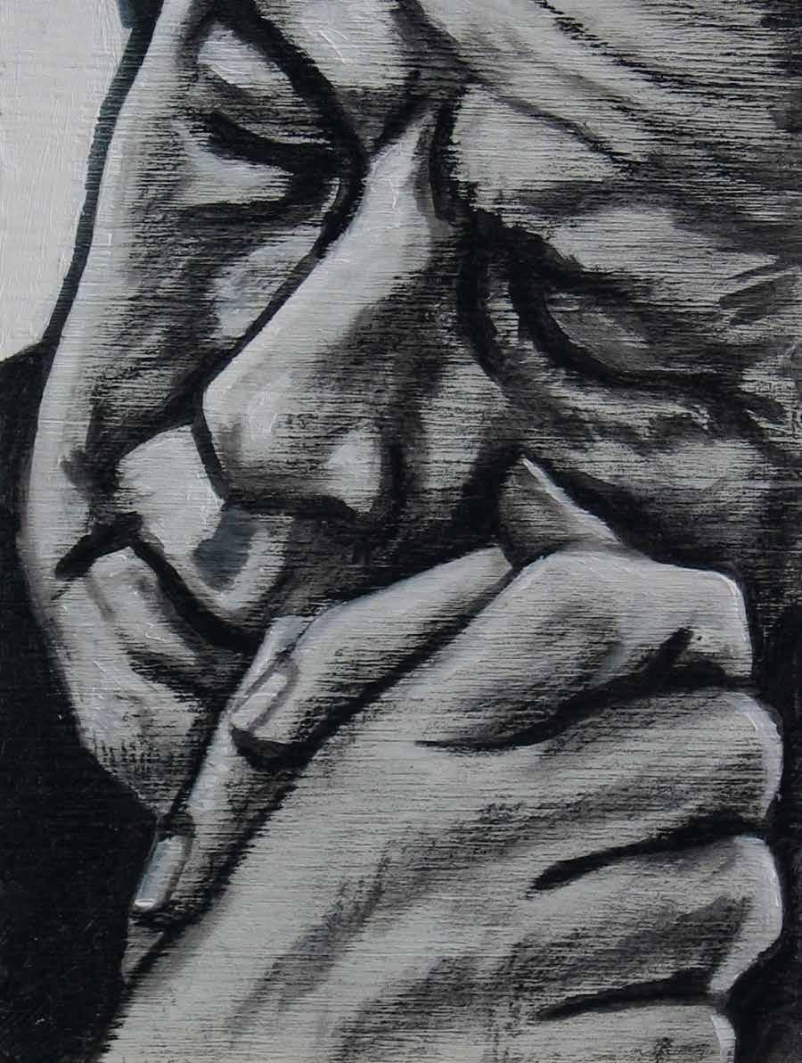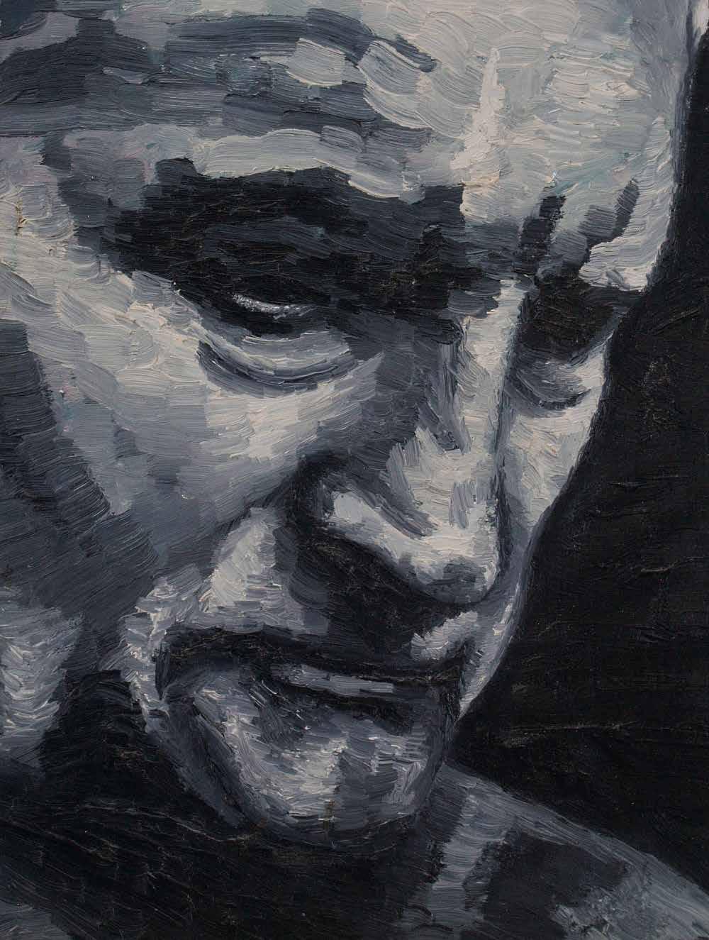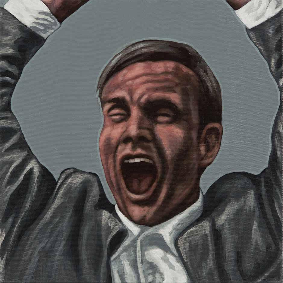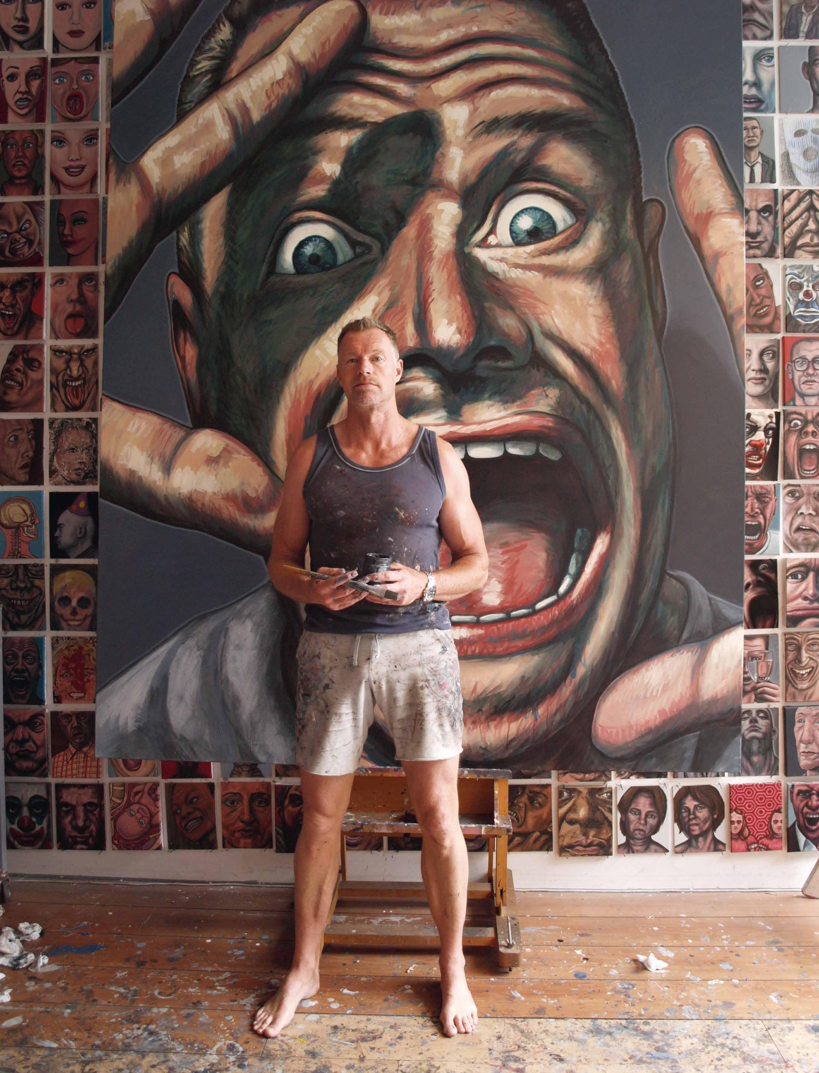 Suidman painted expressions and emotions: harsh, extreme emotions or even the dull boredom of people waiting lethargically, ‘patiently subsiding into inertia, waiting for the bus, fate, Godot, or similar disillusions’. He felt what the person being portrayed was going through, he said in an interview. ‘Not when I paint the clothes or the background, but when I’m working on the face. My own face often mimics the same expression, a contorted spasm or hysterical scream. It sounds like a trick, but I don’t think it would work if you did it consciously. A certain energy attaches itself to the brushstroke and the speed or intensity of painting, which can lead to something that interacts with the viewer.’