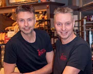 de nodige overredingskracht en een flinke zak geld’, vertelt Dennis Rood, maar uiteindelijk ging de huurster, die er een trendy meubelzaak in runde, akkoord. ‘Het was de investering meer dan waard. We wilden onze focus leggen op onze activiteiten in Enkhuizen en een mooie open bakkerij bouwen. Daarvoor hadden we ook het pand hiernaast nodig.’ Het is om die reden dat Bakkerij Rood gevestigd is aan de Westerstraat 81 tot 83. Twee panden aaneen, op de hoek, met aan de rechterzijgevel het opschrift: ‘Sinds 1909’. De bakkerswinkel heeft een prachtig authentieke uitstraling. Die trekt de vaste klanten onder de Enkhuizers het hele jaar door aan en de toeristen in de daartoe geëigende seizoenen; dagelijks 300 tot 400 klanten en op vrijdag en zaterdag circa 500 tot 700. In april, zo rond Pasen, begint het toeristenseizoen dat tot en met september loopt.