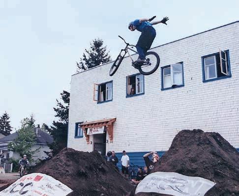 At the 2003 re-opening of Cumberland’s historic Tarbell’s hardware store, which had been repurposed for the Riding Fool Hostel, jump piles were trucked in for the town’s