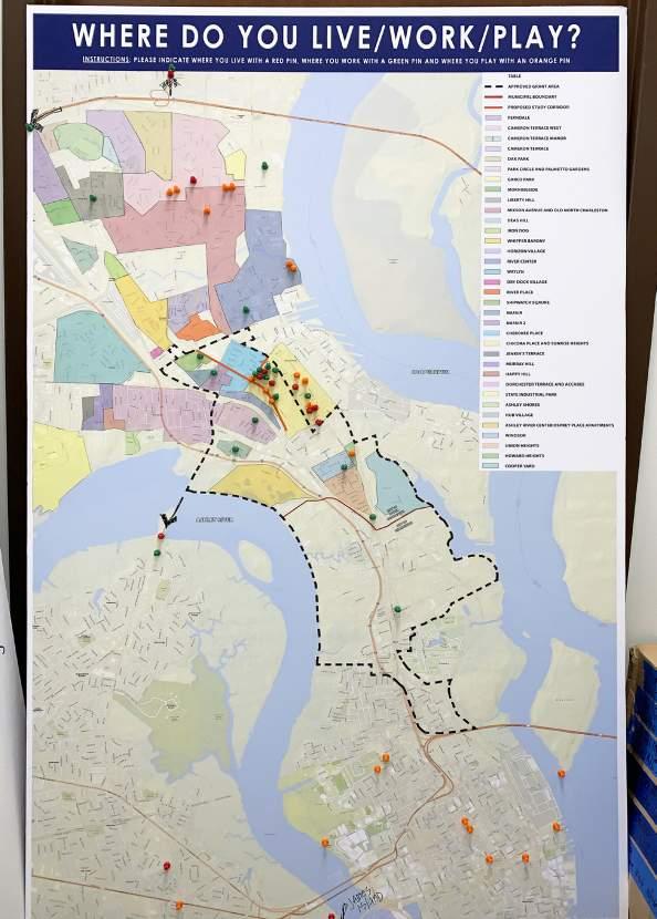 • What uses or improvements in the study area would enhance and support both the Bus Rapid Transit (BRT) goals, Charleston County’s effort to establish a community services hub, the City of North Charleston’s goal to eliminate the food desert designation, and preserve the existing neighborhood’s quality of life and affordability?