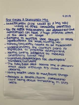 • Understanding that properties in the study area are both government and privately owned, what role can private/ public partnerships play to achieve success of the development?