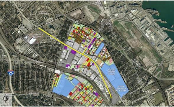 • Creating an access boulevard that would connect local streets to the access roadway and I-26