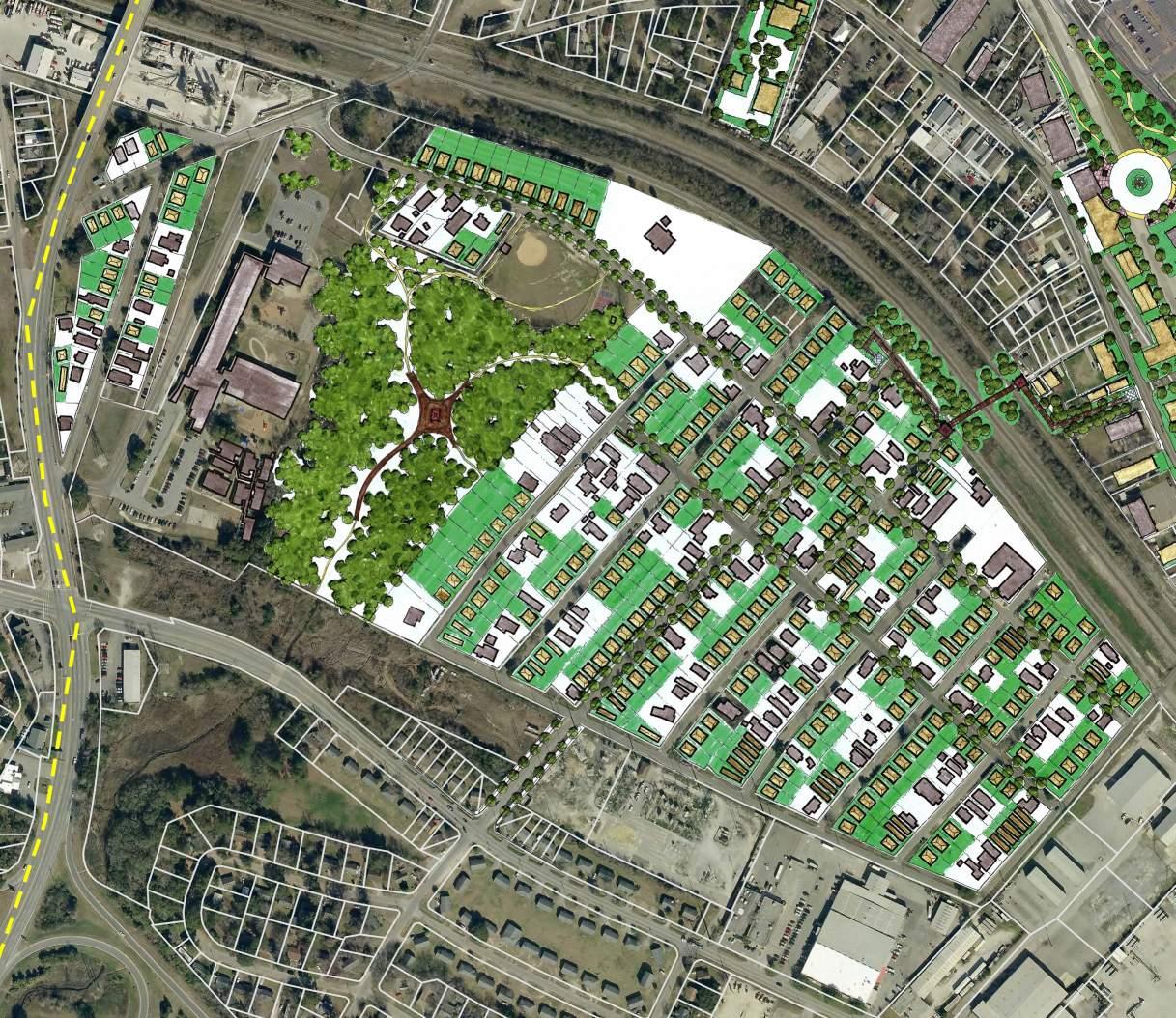 • Proposing the creation of Chicora Tank Farm (which the City of North Charleston has developed into a sport field and open space with more planned facilities to come, is between Chicora Elementary and the new fire station), Stromboli Corridor (the community park mentioned above), bike/pedestrian paths, trails along the rail, connections to the rivers and proposed buffers.