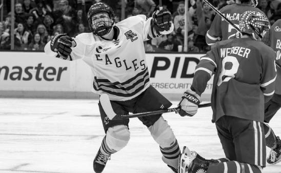 verted when Smith sent a wrister toward the net that ricocheted o Case McCarthy’s skate and past Mathieu Caron to make it 1–0 BC with 14:14 left in the rst period.