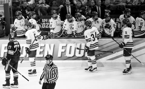 East) handled No. 2-seed BU (27–9–2, 18–4–2) in a 6–2 win and earned their 12th Hockey East Tournament Championship, the most of any school in the conference. e win clinched the Eagles’ rst Hockey East championship in 12 years.