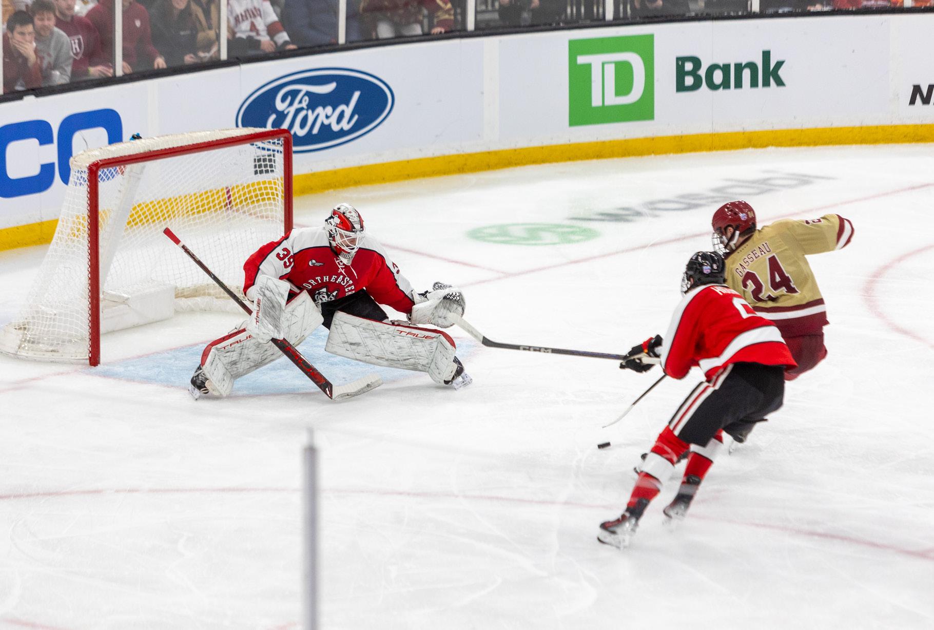 Two minutes and nine seconds later, with No. 9 Northeastern holding a 2–1 lead over the Eagles, a hooking penalty on Cristophe Tellier set the Eagles (26–7–2, 18–4–2 Hockey East) up to play out the