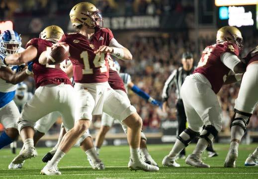 Morehead became the only BC quarterback on record since 1981 with seven touchdowns or 600 yards in his first two starts. The previous record for touchdowns was five, set by Shawn Halloran in 1985, Matt Hasselbeck in 1995–96, and Matt Ryan in 2004–05. The previous yards record was 510, which Jurkovec set in 2020. Morehead has 660 yards in his two starts.