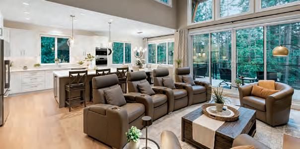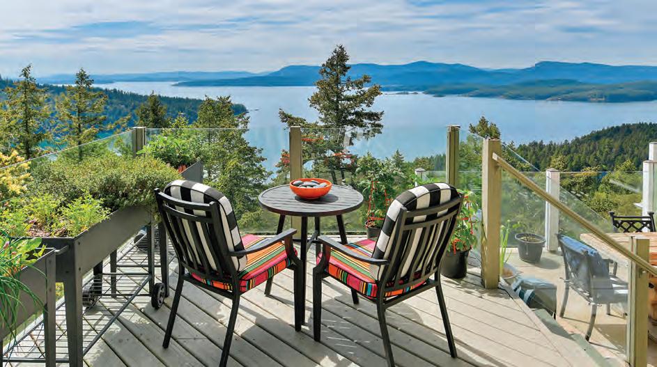 High-end real estate in the valley reflectsthe same philosophy. Luxury here is definedby craftsmanship, setting, and privacy: custom-built residences tucked into quiet enclaves, ocean-view estates perched above the shoreline, and modern architectural homes designed to showcase light, landscape, and seamless indoor-outdoor living. Mature trees, generous lots, and elevated positioning create a feeling of exclusivity without isolation. Whether it’s a contemporary waterfront retreat, a refinedcountry estate on acreage, or a sleek home near the golf course, properties in Courtenay and Comox o er space—not only for entertaining, but for breathing.