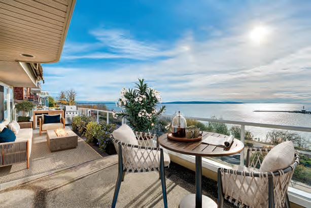 Perched on 10 pristine acres between Vancouver and Victoria, this custom-built 4,242 sq. ft. estate o ers sweeping 180° southern ocean views that stretch endlessly to the horizon. Designed for both elegance and ease, the home blends natural beauty with refinedcraftsmanship. The heart of the home is a brand-new chef’s kitchen with a propane Wolf range, soapstone counters, and Fisher & Paykel appliances. Every detail has been considered: three private bedroom suites each with its own ensuite, an executive offic two additional bathrooms, and inviting spaces