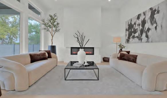 This Ryan Hoyt Custom Design embodies contemporary sophistication on a .4 acre lot in beautiful Dean Park. A spacious light-filledliving room features striking vaulted ceiling, expansive window wall and Douglas firelements. Open-concept dining is perfect for hosting large gatherings. The kitchen delights with sleek gloss-white & rift-cut oak cabinetry, waterfall island, and custom nook. The main level provides an officeguest bedroom, music room, chic mudroom, & 3-pc bath. Above, the primary suite o ers a lavish ensuite & walk-in while separate wing provides 2 more bedrooms with walk-ins & 4-pc bath. Legal, separate suite above garage with private entrance. The grounds impress with extensive stonework, low-maintenance landscape, patio, fountain, firepit, & deluxe garden shed. Four garages + RV port + extensive parking for your vehicles. Nestled in a coveted community near beaches, parks, recreation, amenities, and more. Here You will find the epitome of exclusive Executive living! 8660 Richland Place • North Saanich • MLS 1015431 • $2,678,000