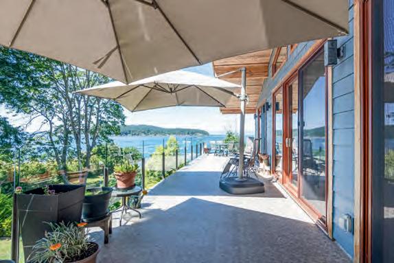 anchored by a Stûv fireplace.Solar panels support sustainable living without compromise. Outdoors, more than 2,200 sq. ft. of sun-drenched decks invite you to immerse yourself in the rhythm of the coast. Watch eagles soar overhead, orcas glide past, and sunsets paint the sky. A circular driveway o ers grand arrival, while a secondary drive leads to a prepared site with potential for a guest cottage. This is more than a home, it is a sanctuary where luxury meets nature, o ering the rare chance to own a world apart, yet within reach of Vancouver and Victoria.