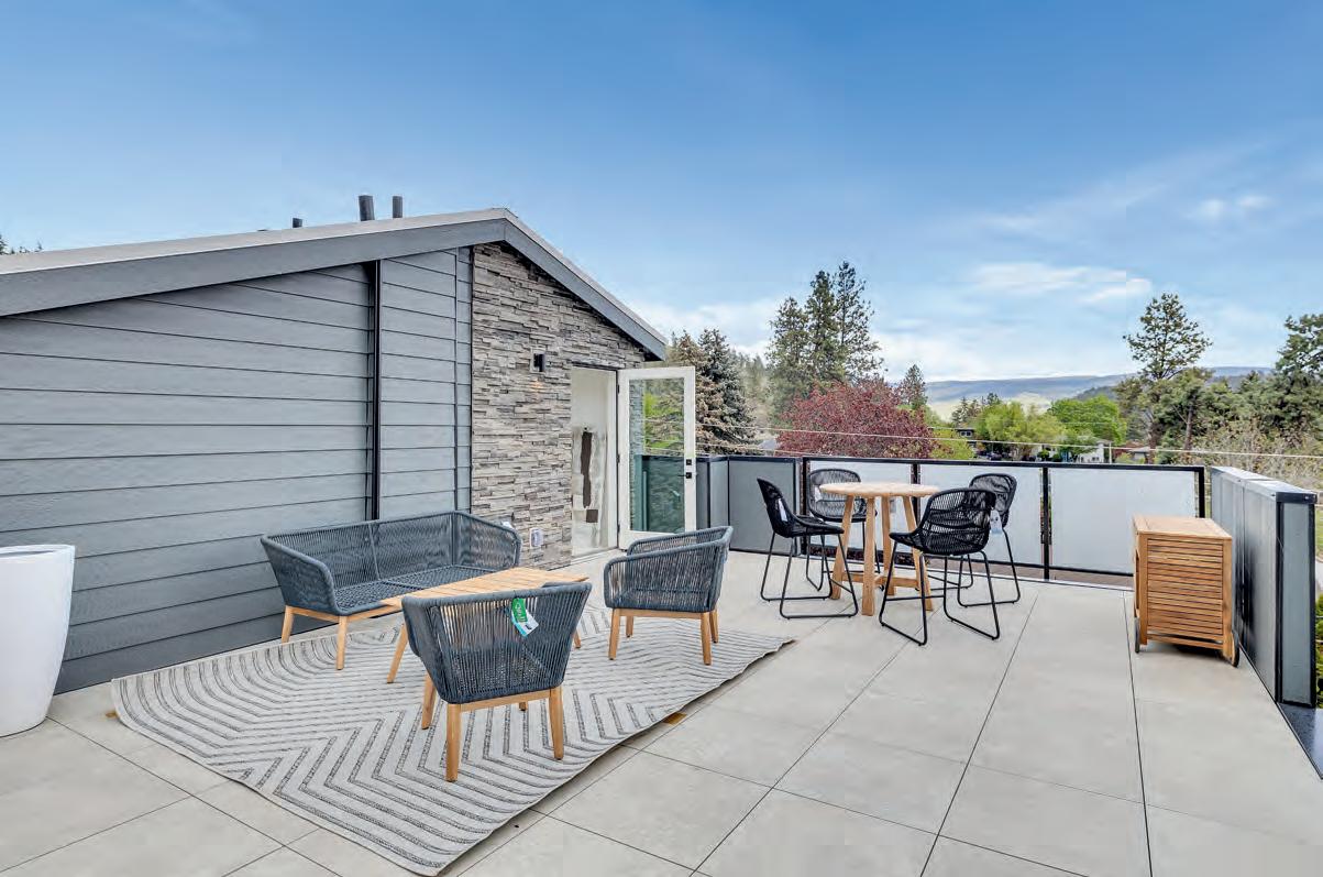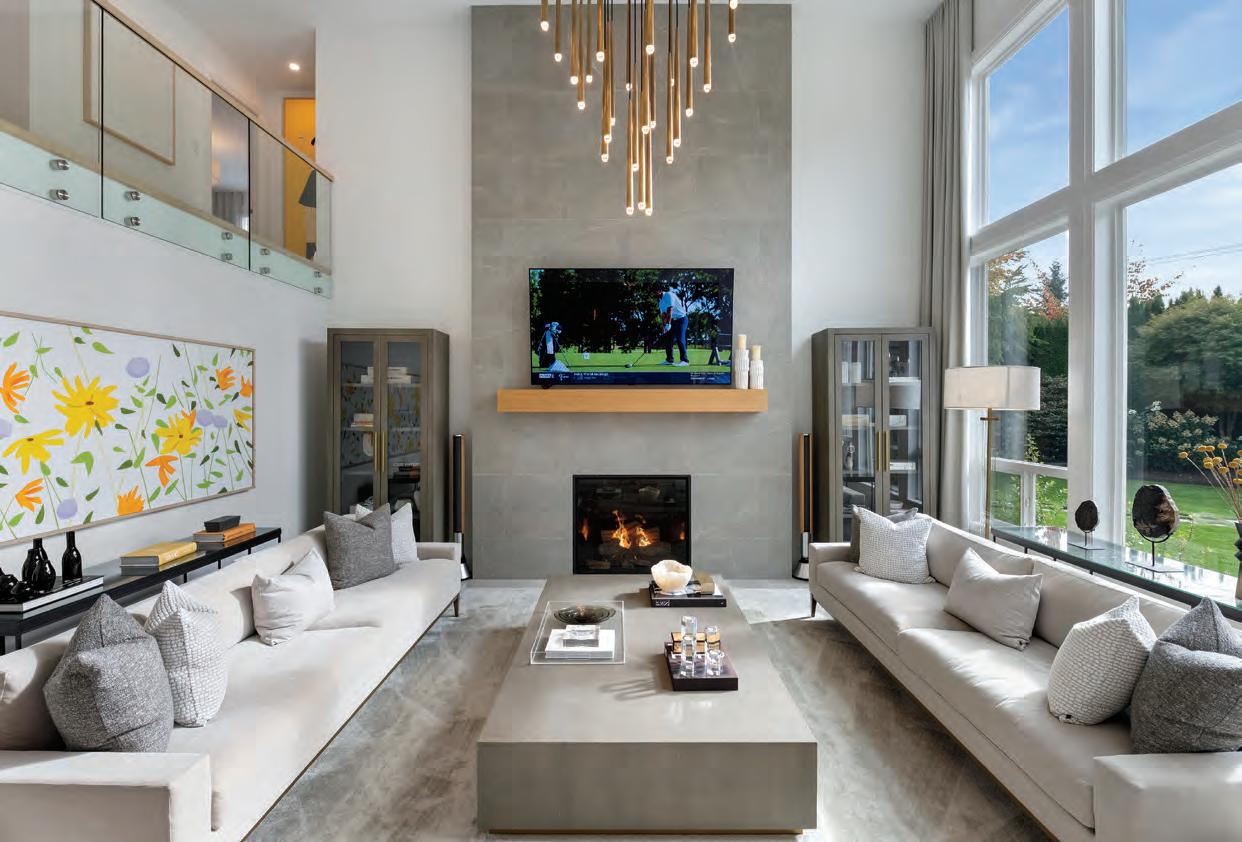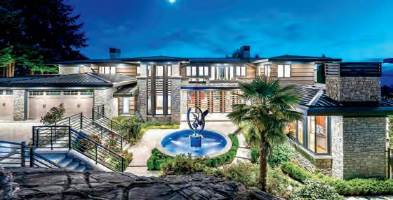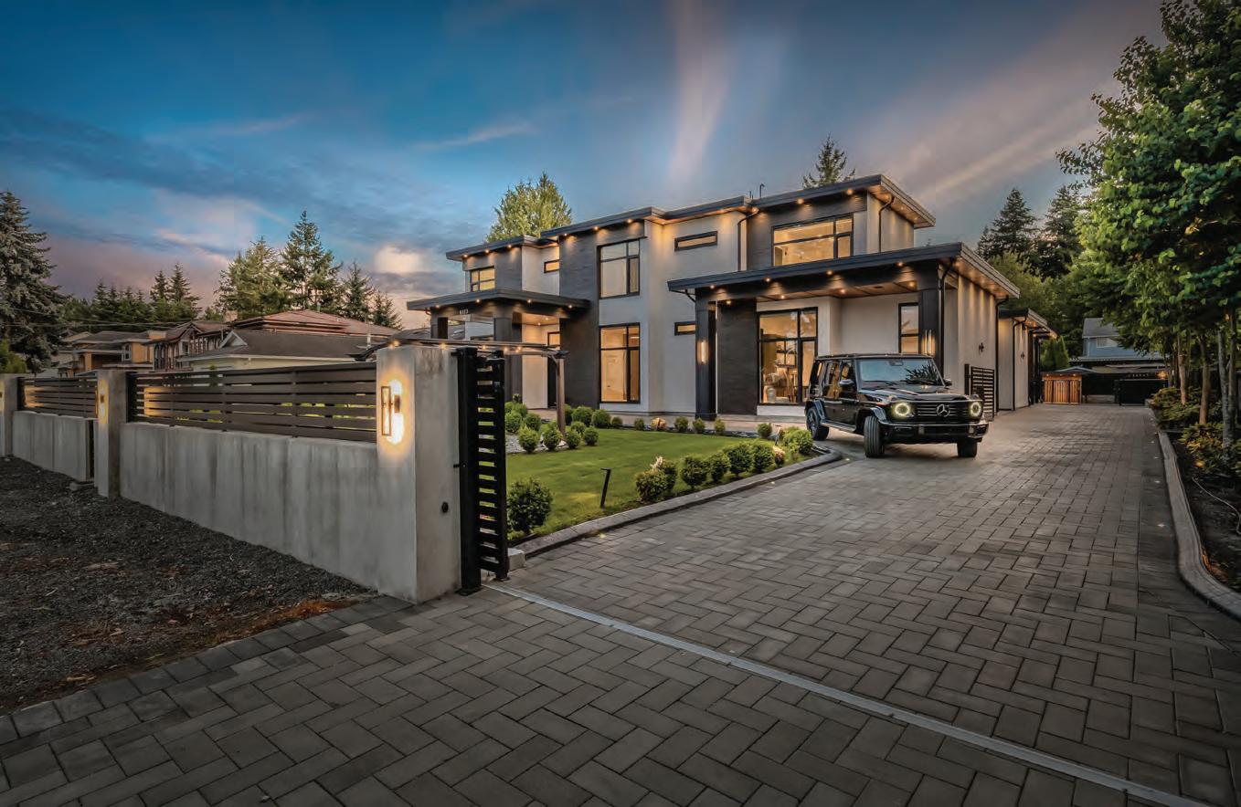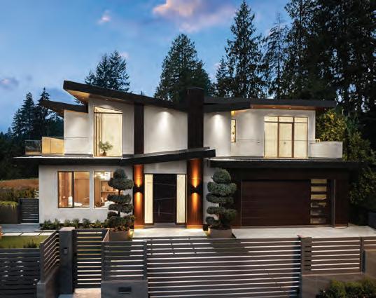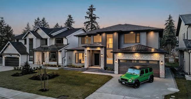 This Ryan Hoyt Custom Design embodies contemporary sophistication on a .4 acre lot in beautiful Dean Park. A spacious light-filledliving room features striking vaulted ceiling, expansive window wall and Douglas firelements. Open-concept dining is perfect for hosting large gatherings. The kitchen delights with sleek gloss-white & rift-cut oak cabinetry, waterfall island, and custom nook. The main level provides an officeguest bedroom, music room, chic mudroom, & 3-pc bath. Above, the primary suite o ers a lavish ensuite & walk-in while separate wing provides 2 more bedrooms with walk-ins & 4-pc bath. Legal, separate suite above garage with private entrance. The grounds impress with extensive stonework, low-maintenance landscape, patio, fountain, firepit, & deluxe garden shed. Four garages + RV port + extensive parking for your vehicles. Nestled in a coveted community near beaches, parks, recreation, amenities, and more. Here You will find the epitome of exclusive Executive living! 8660 Richland Place • North Saanich • MLS 1015431 • $2,678,000