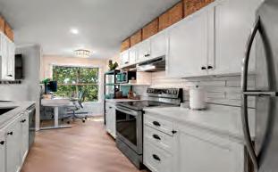 Here, each morning begins with gentle rays streaming over new floors,dancing on gleaming countertops, and casting a glow across a modern open-concept sanctuary. The heart of the home is a kitchen that whispers of shared laughter, culinary adventures, and quiet, contented evenings by the gas fireplace.Beyond, a generous patio beckons—your private retreat to savour co ee with the sunrise. The air is peaceful, wrapped in the quietude of a cul-de-sac. The spacious primary bedroom is a tranquil refuge, boasting a walk-in closet ready to cradle your dreams and an ensuite that blends comfort with style. Each bathroom gleams with thoughtful updates, promising both elegance and ease. In this family-friendly, pet-embracing community, every day feels like a fresh beginning. Convenience is woven into the very essence of this home, with underground parking, ample storage, and a location steps from parks, shops, schools, and transit. Let this beautifully renovated condo in East Saanich become your story’s next chapter. 305 3363 Glasgow Avenue • Saanich • MLS 1010714 • $579,000