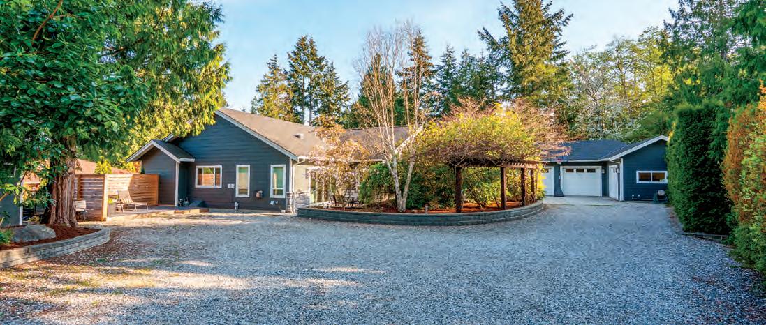 Experience modern West Coast living in this elegant 2021-built Deep Cove Rancher, o ering seamless indoor-outdoor flw and sun-filledspaces. The vaulted ceilings and large windows bathe the home in natural light, creating a bright, airy atmosphere. Enjoy an eco-sensitive lifestyle with low-maintenance landscaping on a half-acre lot that o ers privacy and a connection to nature. The Primary suite enjoys privacy with an adjacent courtyard, while the Guest suite o ers flexibility of use in the opposing wing, complete with patio. The community is vibrant with local farms, Deep Cove Market store, french immersion school, vineyards, and artisans. Custom draperies and quality finishesenhance the home’s serenity and utility. Living here means less stress and more time to enjoy nearby parks, beaches, and trails, as well as the close-knit village charm of Sidney and North Saanich. This property is perfect for those seeking comfort, community spirit, and the beauty of the Saanich Peninsula. 838 Birch Road • North Saanich • MLS 1015070 • $2,398,000
