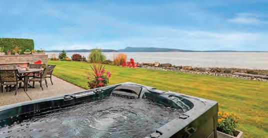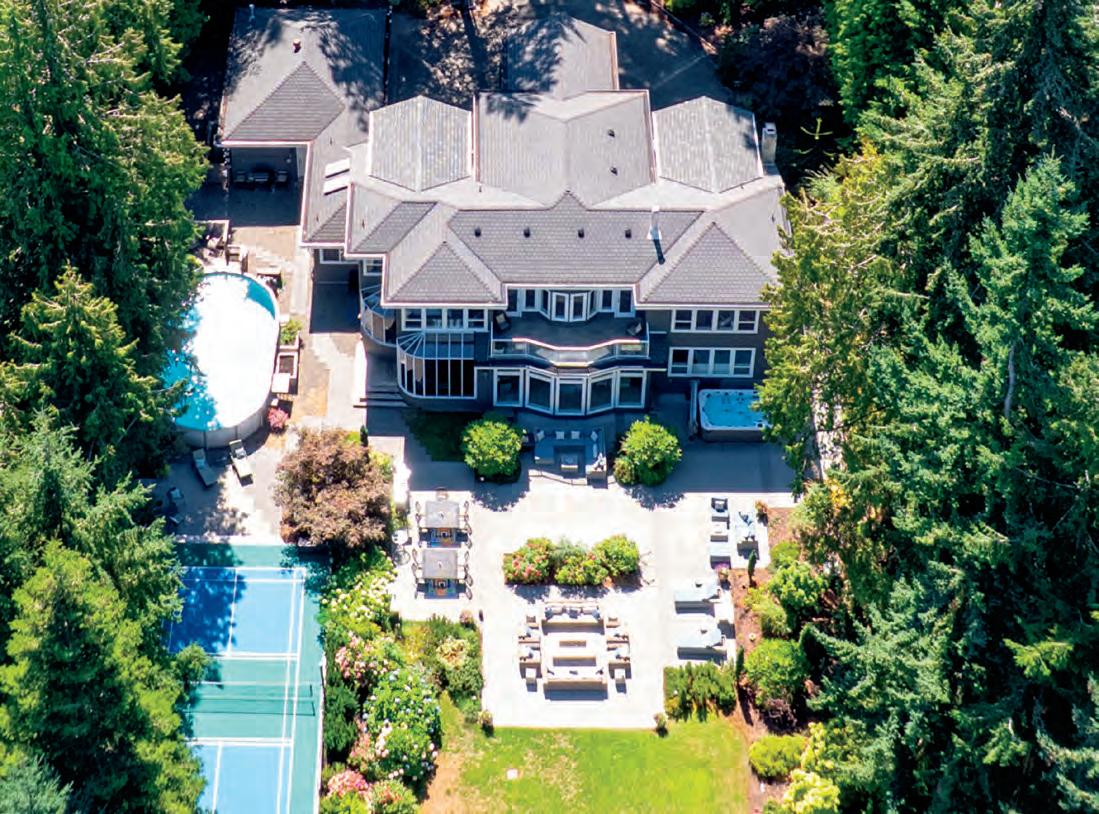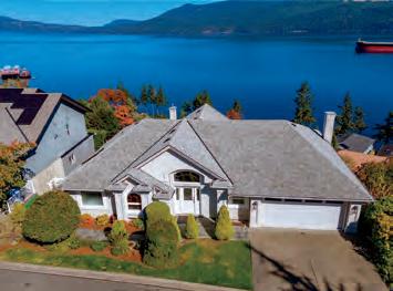 Perched on 10 pristine acres between Vancouver and Victoria, this custom-built 4,242 sq. ft. estate o ers sweeping 180° southern ocean views that stretch endlessly to the horizon. Designed for both elegance and ease, the home blends natural beauty with refinedcraftsmanship. The heart of the home is a brand-new chef’s kitchen with a propane Wolf range, soapstone counters, and Fisher & Paykel appliances. Every detail has been considered: three private bedroom suites each with its own ensuite, an executive offic two additional bathrooms, and inviting spaces