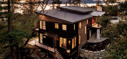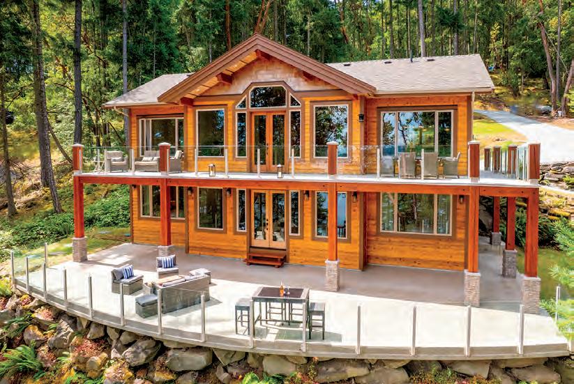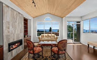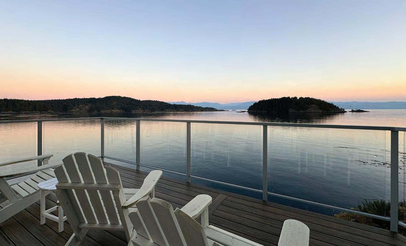 anchored by a Stûv fireplace.Solar panels support sustainable living without compromise. Outdoors, more than 2,200 sq. ft. of sun-drenched decks invite you to immerse yourself in the rhythm of the coast. Watch eagles soar overhead, orcas glide past, and sunsets paint the sky. A circular driveway o ers grand arrival, while a secondary drive leads to a prepared site with potential for a guest cottage. This is more than a home, it is a sanctuary where luxury meets nature, o ering the rare chance to own a world apart, yet within reach of Vancouver and Victoria.
