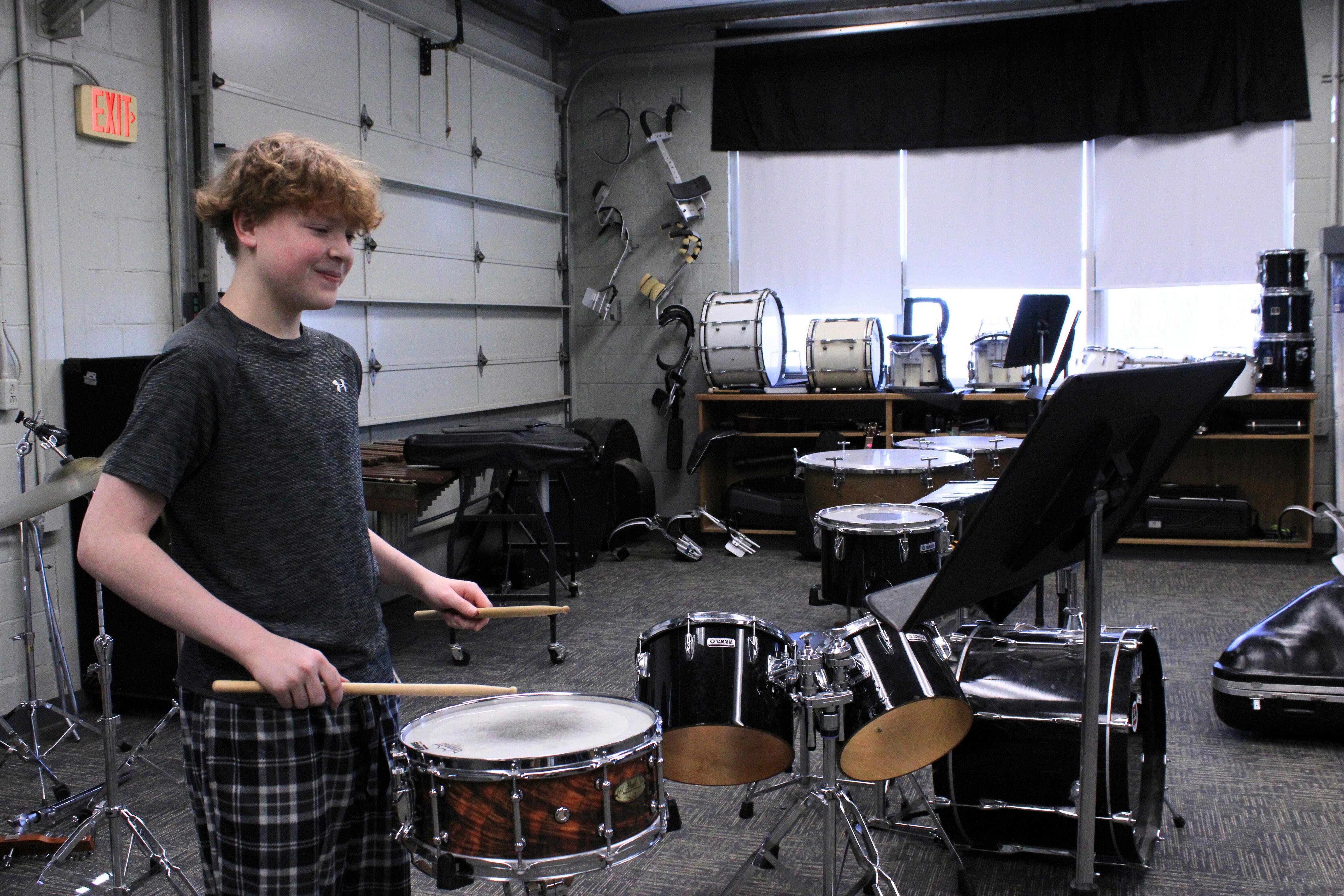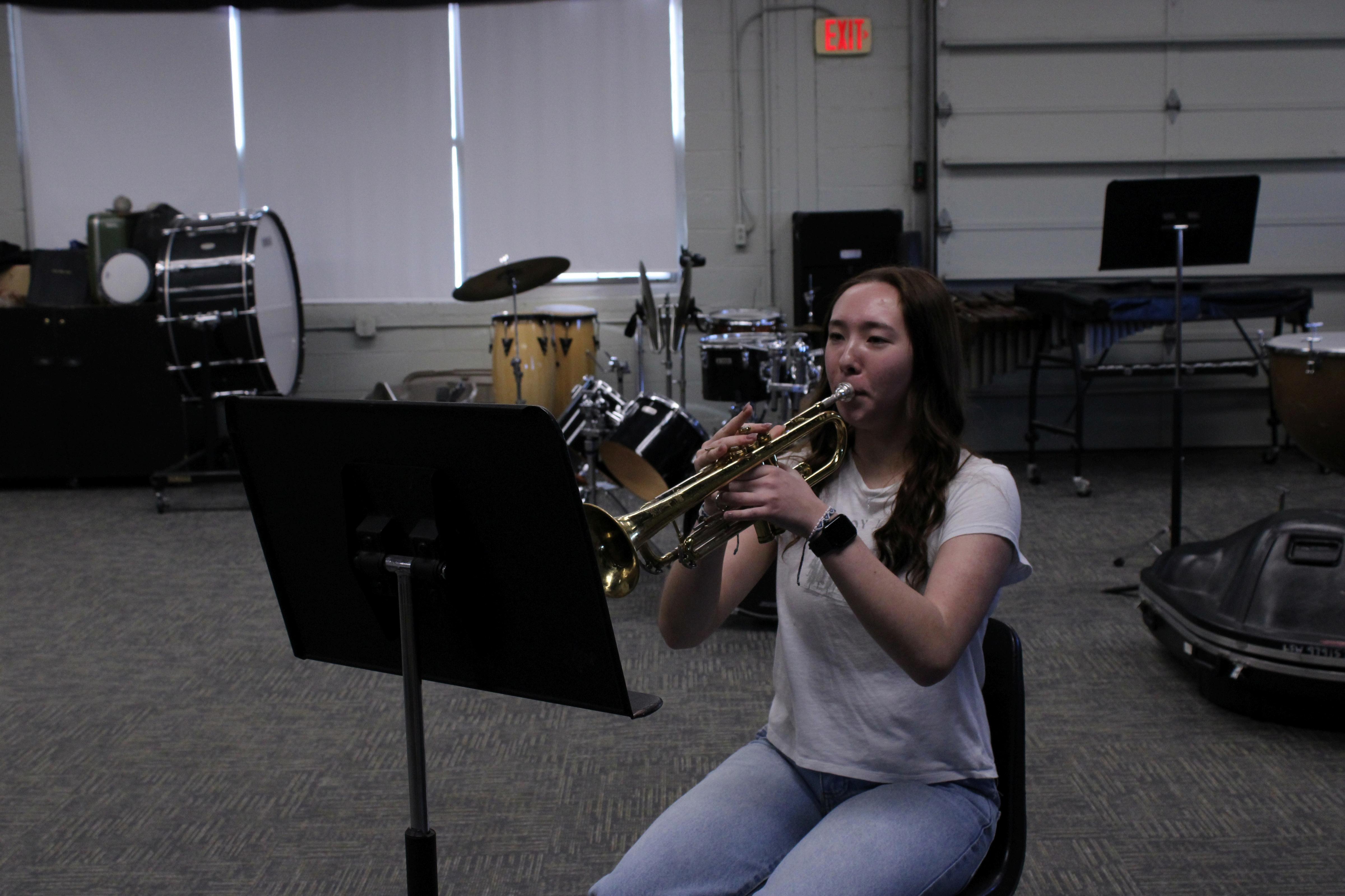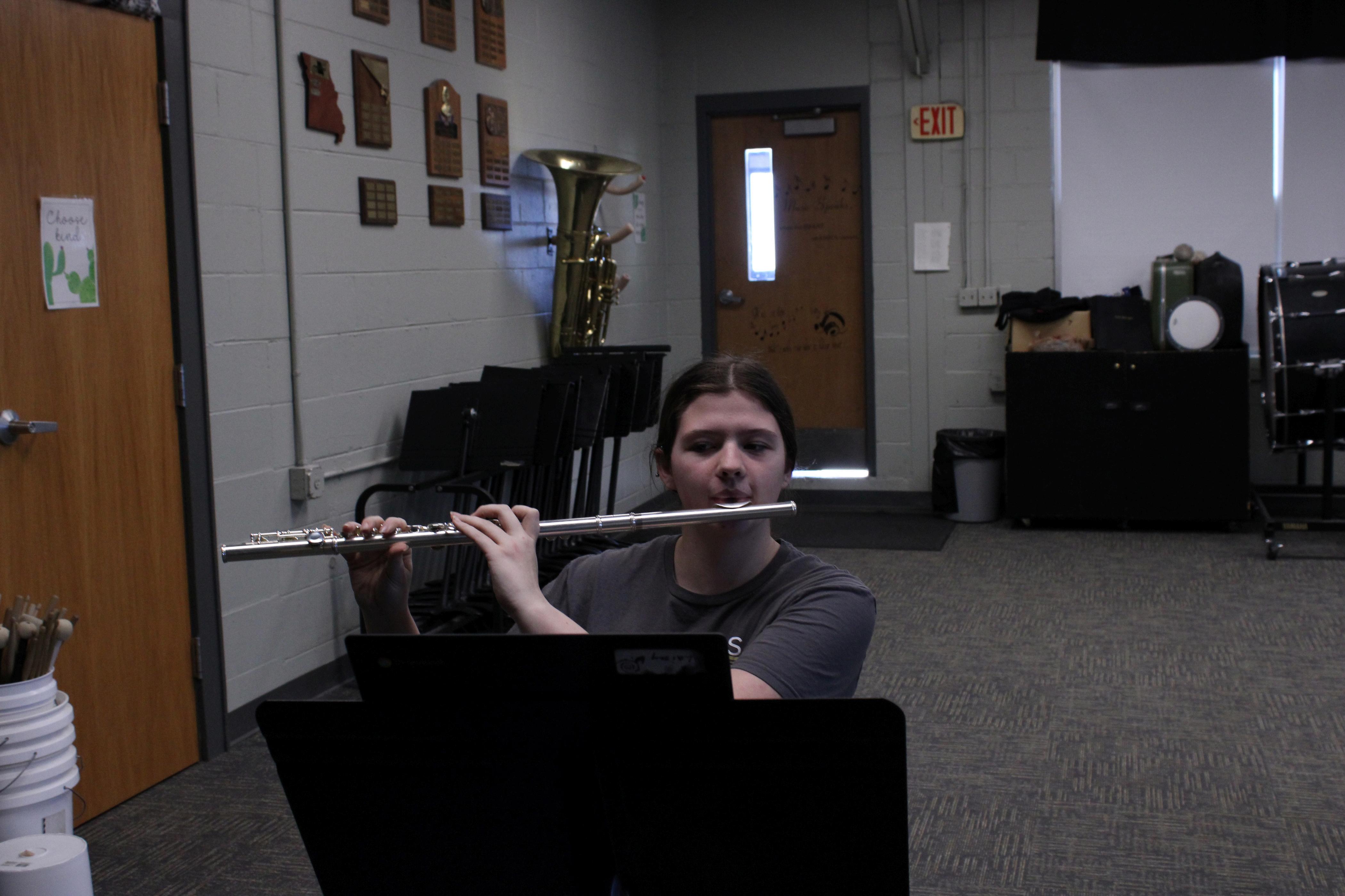 Photo Credit: Michaela Copeland Pictured: Band students practicing music for contest