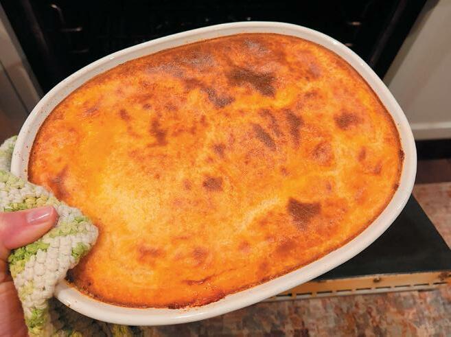 Top all with the béchamel sauce, and finish with a sprinkling of Pecorino and place in the oven for 35-45 minutes, or until the top of the moussaka is golden brown.