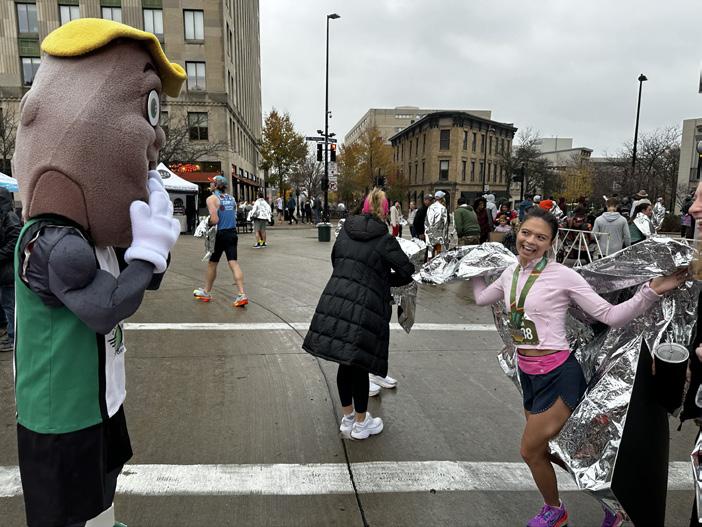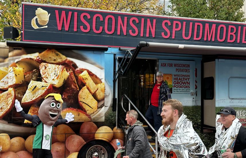 Spudly & the Spudmobile serve Madison Marathon runners baked potatoes