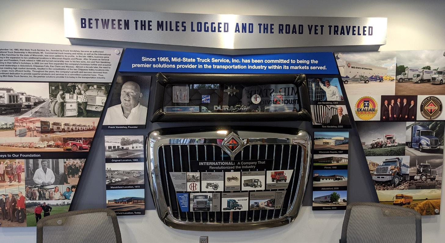 In the lobby of the Chippewa Falls, Wisconsin, location is a display giving some history of the company. On September 1, 1965, Mid-State Truck Inc., founded by Frank Vendehey, became an authorized International Truck dealership in Marshfield.