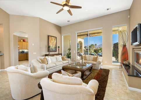 Palm Desert CC • The spacious backyard is perfectly sized, o ering room for a pool/spa and an outdoor kitchen area. 3BD/2.5BA. 2139 SF. Unfurnished. $589,000