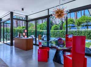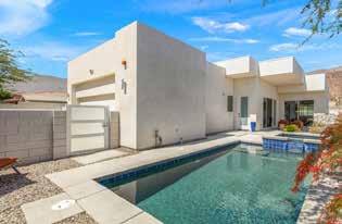 La Quinta Cove • Like new contemporary home. 12-ft ceilings in great room area with fireplace. Sliding doors, ceramic tile. Gourmet kitchen, pool/spa. 3BD/2BA, 1654 SF. $759,000.