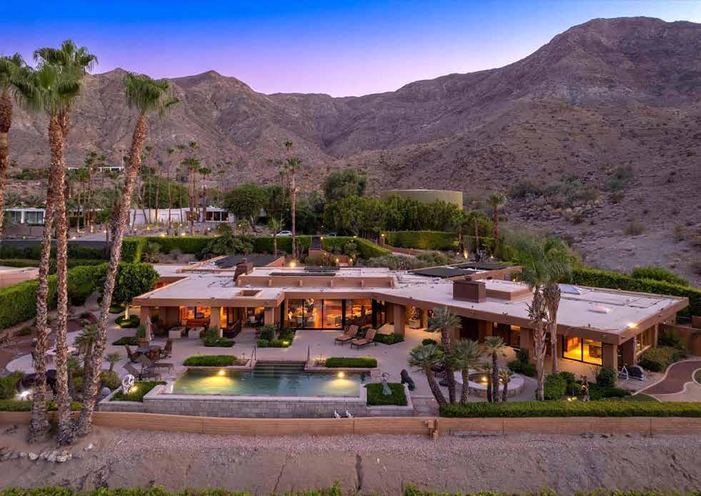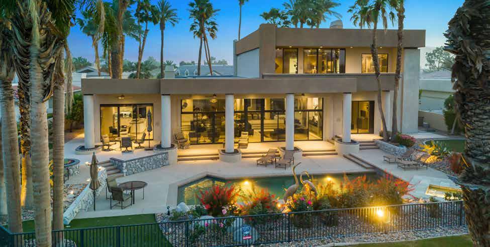 Thunderbird Heights • This home boasts one of the best view lots in the area. Resort-style oasis features a newer pool, spa, waterfall features, and a sunken conversation area with a firepit. Chef’s kitchen includes a top-of-the-line appliances. 2 bedroom guesthouse. 5BD/8BA, approx 7516 SF. $6,750,000