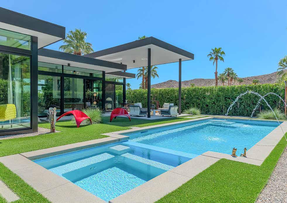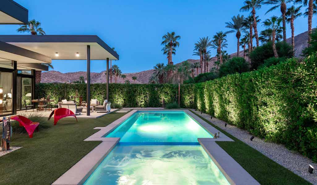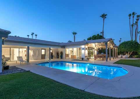 Thunderbird Heights • This exceptional late mid-century modern home offers a perfect blend of privacy & luxury. The main living area showcases wood ceilings, fireplace, and sit-down wet bar. Chef’s kitchen, formal dining room, and breakfast room. Primary bedroom suite is a luxurious retreat, with a fireplace and a generous lounge area. Bedrooms are strategically separated into three wings for privacy. The 4th bedroom is used as a media room. Private putting green, large pool & spa, fire pit, expansive covered patios, and built-in BBQ. Private gated driveway, 3-car garage 4BD/6BA, 5630 SF. $5,900,000