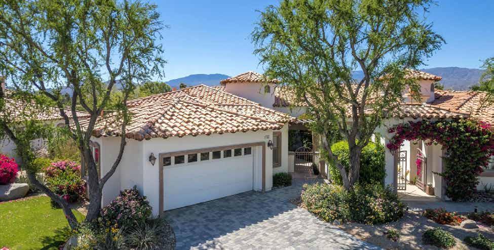 Golf Villa • Stunning mountain and lake views across multiple fairways. Stylish renovation with designer furnishings and a Santa Barbara ambiance.Gated courtyard with custom landscaping and doubleentry doors. Light and bright great room with fireplace and wetbar. 3BD/3BA, 2380 SF. $649,000