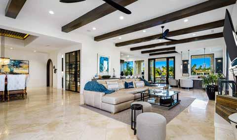 Indian Wells Country Club • Stunning contemporary home with no HOA dues. Incredible views of the mountains and overlooks the 13th fairway. Remodeled, chef’s kitchen, wall-of-glass, and fireplace. Elevated media area. Pool & spa, swim-up bar. Furnished. 3BD/4BA, approx. 4985 SF. $2,895,000