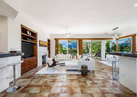 Thunderbird Heights • Offered turnkey with designer furnishings. Perched at the top of a very private cul-de-sac in the guard-gated enclave. Combines classic California architecture with artful design and enjoyable amenities. The expansive living area is centered by a dramatic sunken fireplace and retro-chic conversation pit. The chef’s kitchen is a showpiece boasting floor-to-ceiling custom cabinetry and top-of-the-line appliances. Huge resort-style backyard is complete with a shimmering pool and spa, a sunken, and fully lit tennis court. 6BD/5BA, 7312 SF. $4,695,000