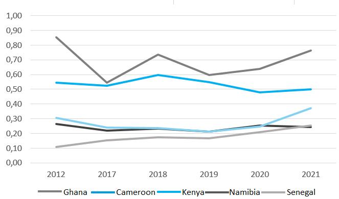 The increasing diversification of industry Development of foreign trade (exports and imports) between Germany and selected African countries, in billion US dollars