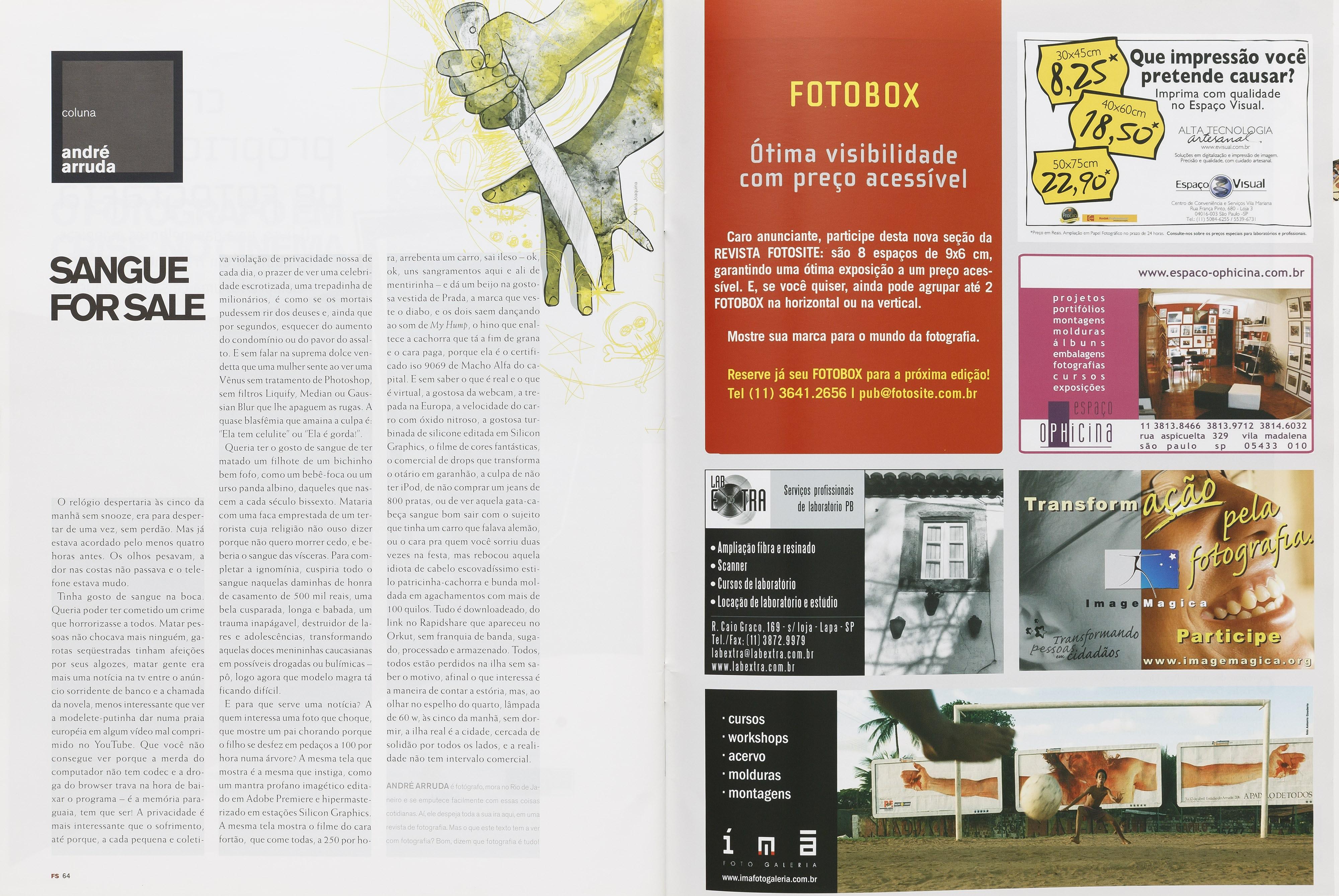 ter Flávia Lelis flavialelisGfotosite.com.br Revisão Tuca Borba ando Costa Netto, Fernando de Tacca, Marcelo Reis, Paulo Vitale, Rodrigo a ar Ócios Adriana Bortolotto adriana Osixpix.com.br E de negócios Flávia on dos Santos andersonGQsixpix.com.br Se Ari Marinhei Av. Mofarrej, 2º ado Secretária Ariane Stipp Exp Leonardo Marinheiro rrej, 1.200, 2º andar B, Complexo Empresarial Bic, Vila Leopoldina, CEP 05311-000, São Paulo, SP, Brasil Tel/fax: 55 11 3641-2656 Nas lojas Fnac (São Paulo, Rio de Janeiro, Curiti li Caen ba, Brasília Campinas, Somente pelo site www.fotosite.com.br, onde tudo