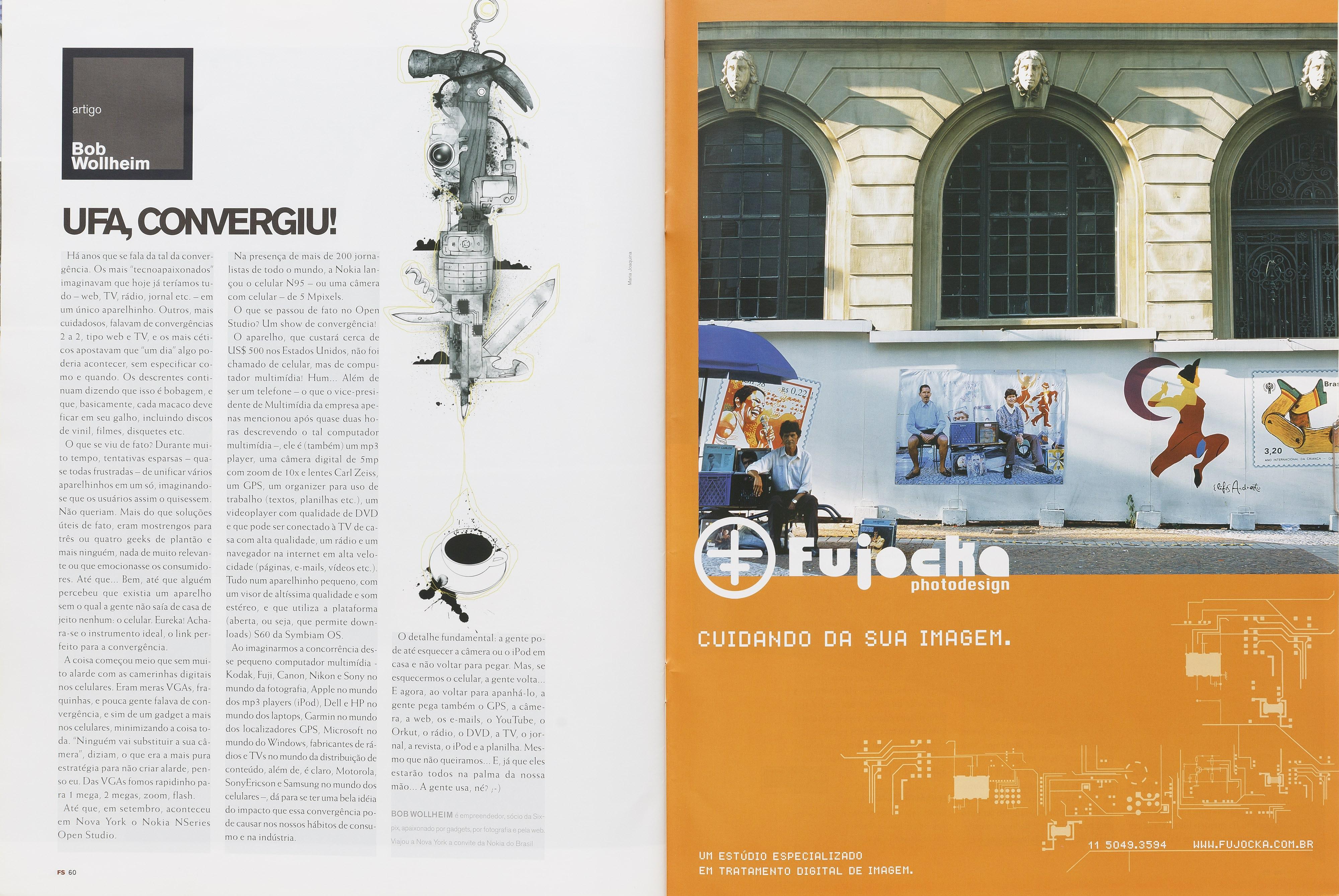 O que se viu de fato? Durante muito tempo, tentativas esparsas quase todas frustradas de unificar vários aparelhinhos em um só, imaginandose que os usuários assim o quisessem. Não queriam. Mais do que soluções úteis de fato, eram mostrengos para três ou quatro geeks de plantão e mais ninguém, nada de muito relevante ou que emocionasse os consumidores. Até que... Bem, até que alguém percebeu que existia um aparelho sem o qual a gente não saía de casa de jeito nenhum: o celular. Eureka! Achara-se o instrumento ideal, o link perfeito para a convergência.