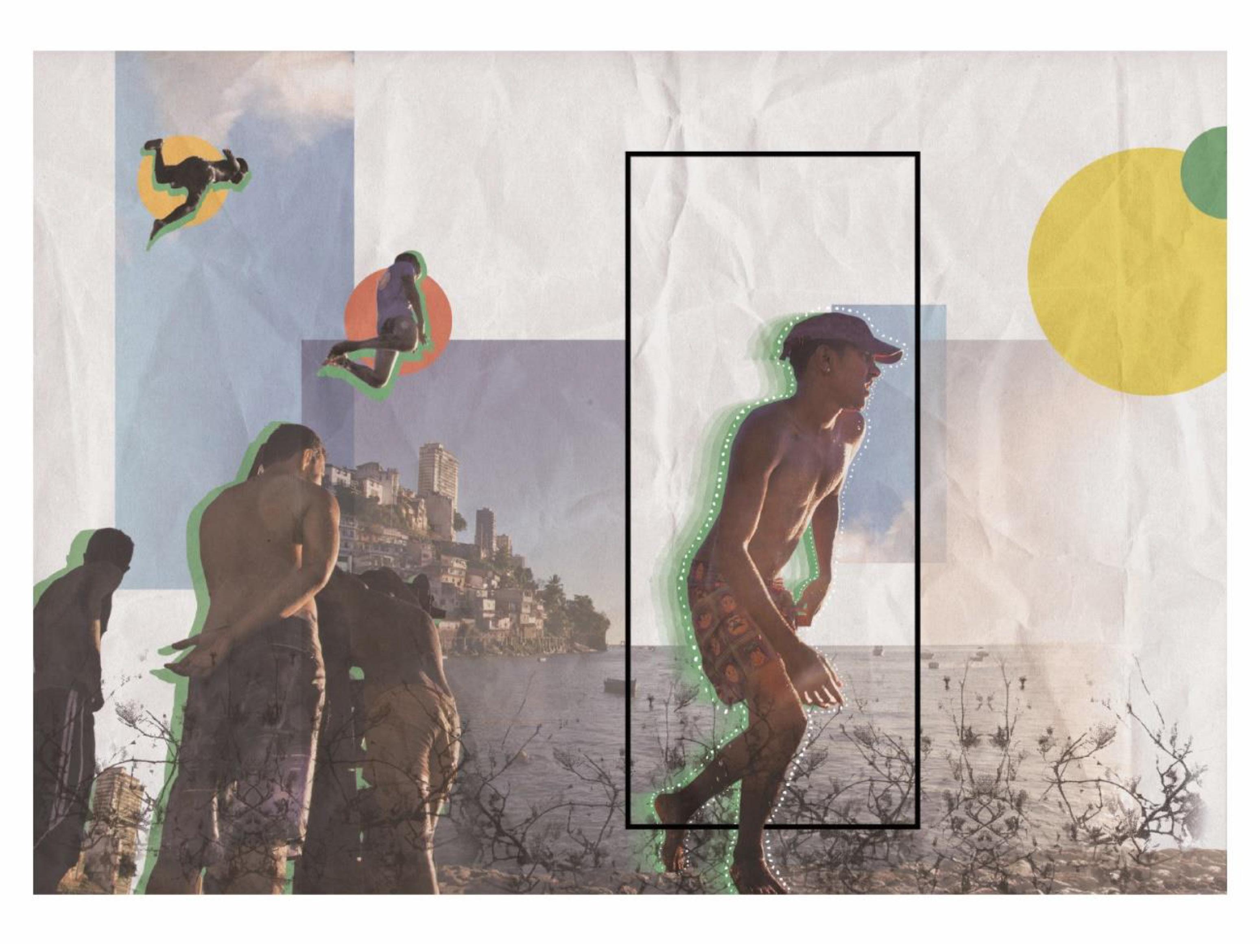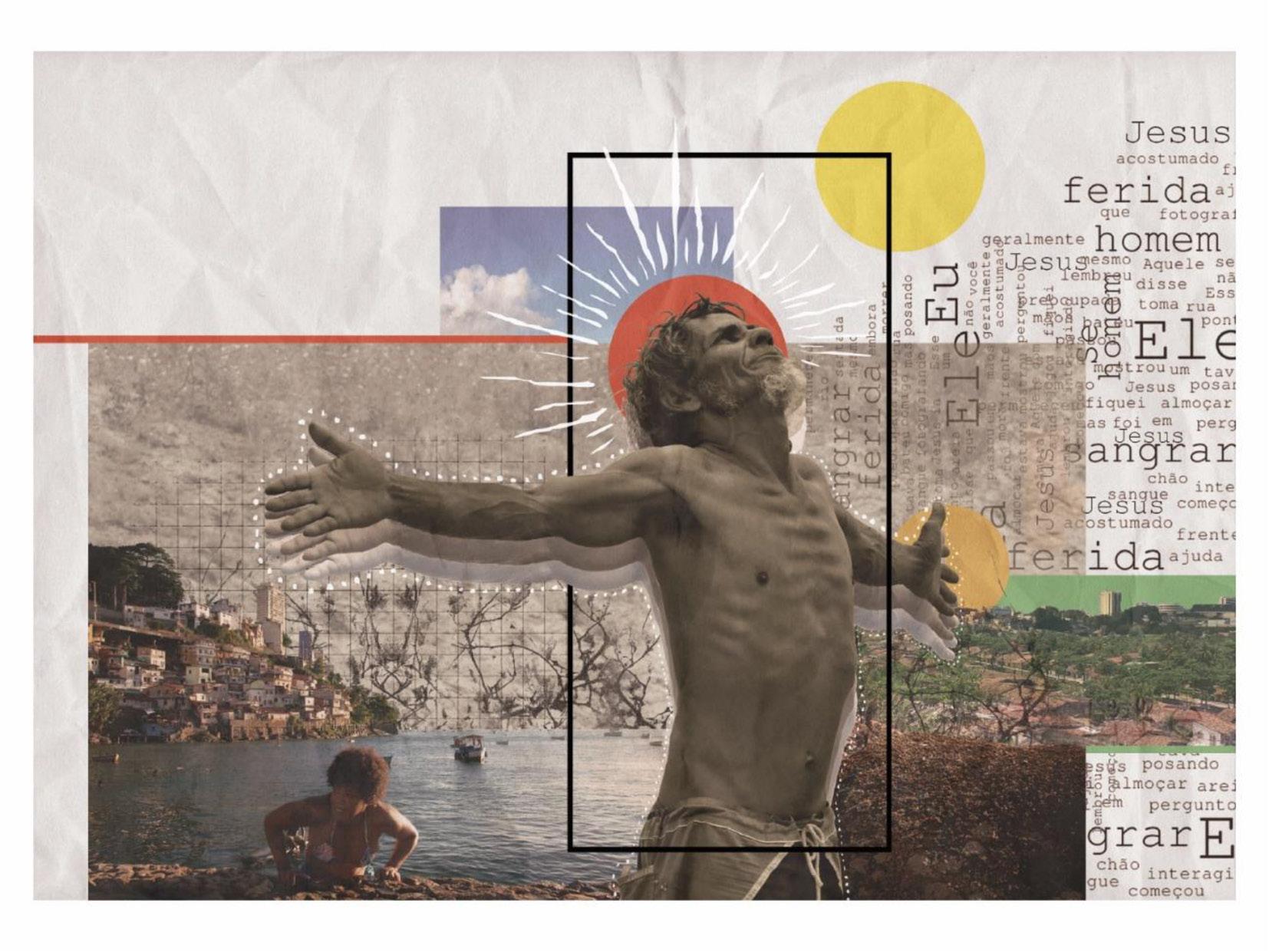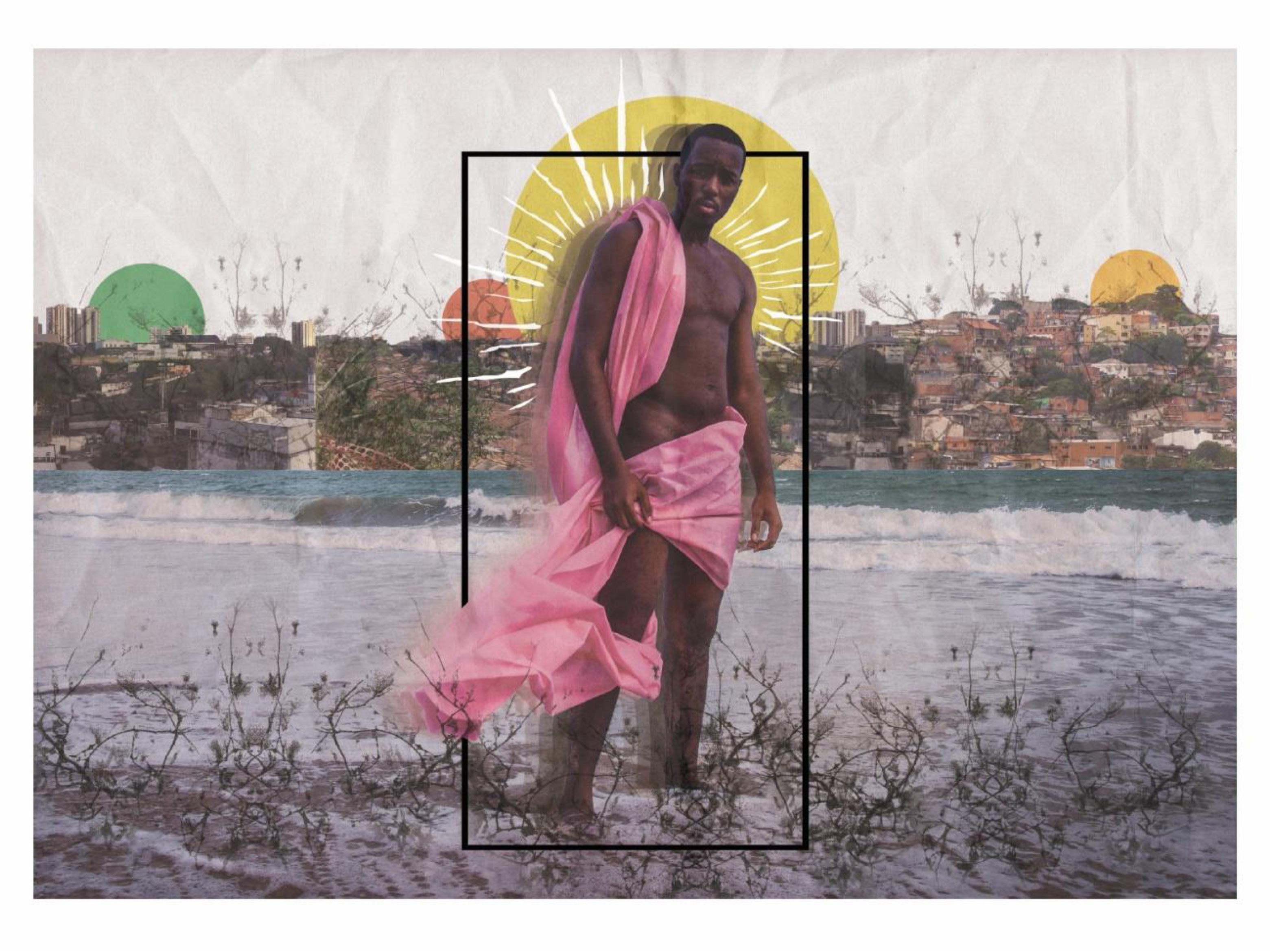 Pela intersecção de nossas vivências e de nossas artes — a fotografia e a colagem –, num transe criativo, buscamos a construção de um espaço fan tástico para pessoas negras, de modo que entre o real, o imaginário e a fic ção, a poesia das corporalidades negras emergissem em todos os planos — o sagrado, o trabalho, a contemplação, a luta, o lazer — como protagonistas: personagens reais em lugares fabulosos. O ser negro e negra construídos sob ótica da valorização e estima, num lugar onde nem o céu e nem o chão são um limite.