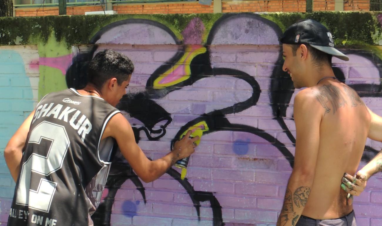 Compartilhando pincéis, tintas e histórias: 40 Mutirão de graffiti no Colégio Ildo Meneghetti