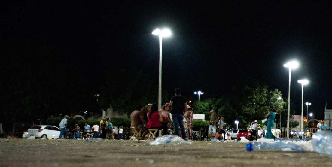 Tendo experimentado o núcleo da festa e a sua efervescência pelas ruas da cidade, ela própria um centro tradicional do comércio na região do Cariri, estamos prontos para completar a nossa viagem. Vemos agora uma sequência de imagens de encerramento sugerindo a partida. A nossa visita como leitores também está a terminar, embora o presente do livro seja que podemos sempre voltar a experimentá-lo numa leitura futura. Por agora, nestas páginas finais, somos apresentados com um contraste revelador entre dois tipos de vazio. O primeiro é o dos detritos; o lugar que foi deixado para trás depois de a festa ter terminado, garrafas de plástico espalhadas à medida que os celebrantes se vão arquivando, de volta à sua vida quotidiana. Os trabalhadores do saneamento e os empresários locais vão, sem dúvida, tomar a si próprios a tarefa de limpar estas ruas e praças para futuras multidões. O segundo tipo de vazio é mais precioso, sagrado mesmo, uma espécie de reverência na solidão pós-festival. A fotografia final exibe uma beleza tranquila que permanece após a partida das multidões; um silêncio após o clamor sagrado e profano, após os gritos de oração e vozes levantadas em canto, que nos permite contemplar a viagem fotográfica que completamos, bem como este espaço em si como um destino espiritual estabelecido e um lugar preparado para abraçar os encontros comunitários do futuro. As muitas serpentinas azuis e brancas são como recordações do povo, da sua devoção, e guardas das suas próprias memórias pessoais deste lugar, neste tempo especial. Elas não serão esquecidas.