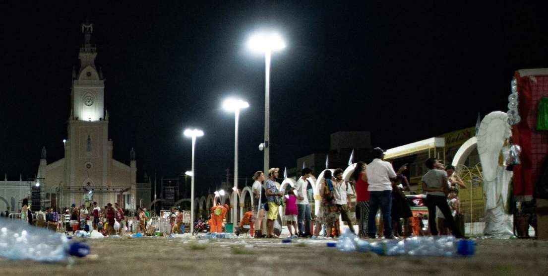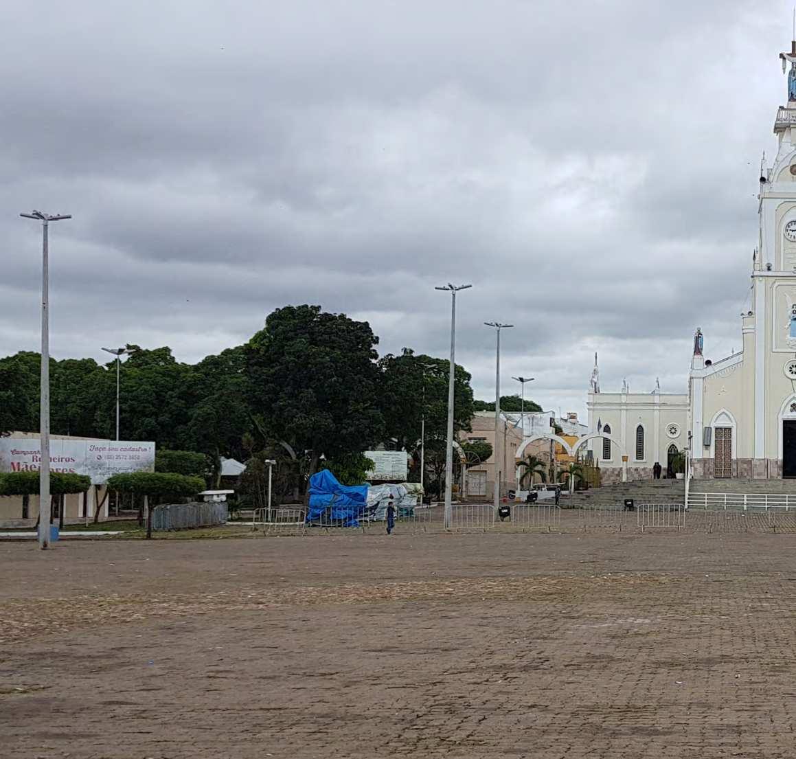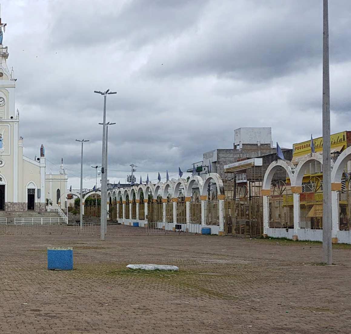 Ao fundo, a Basílica de Nossa Senhora das Dores. No pátio, resíduos não jogados em lugar próprio./ In the background, the Basilica of Our Lady of Sorrows. In the courtyard, waste not thrown in its proper place.
