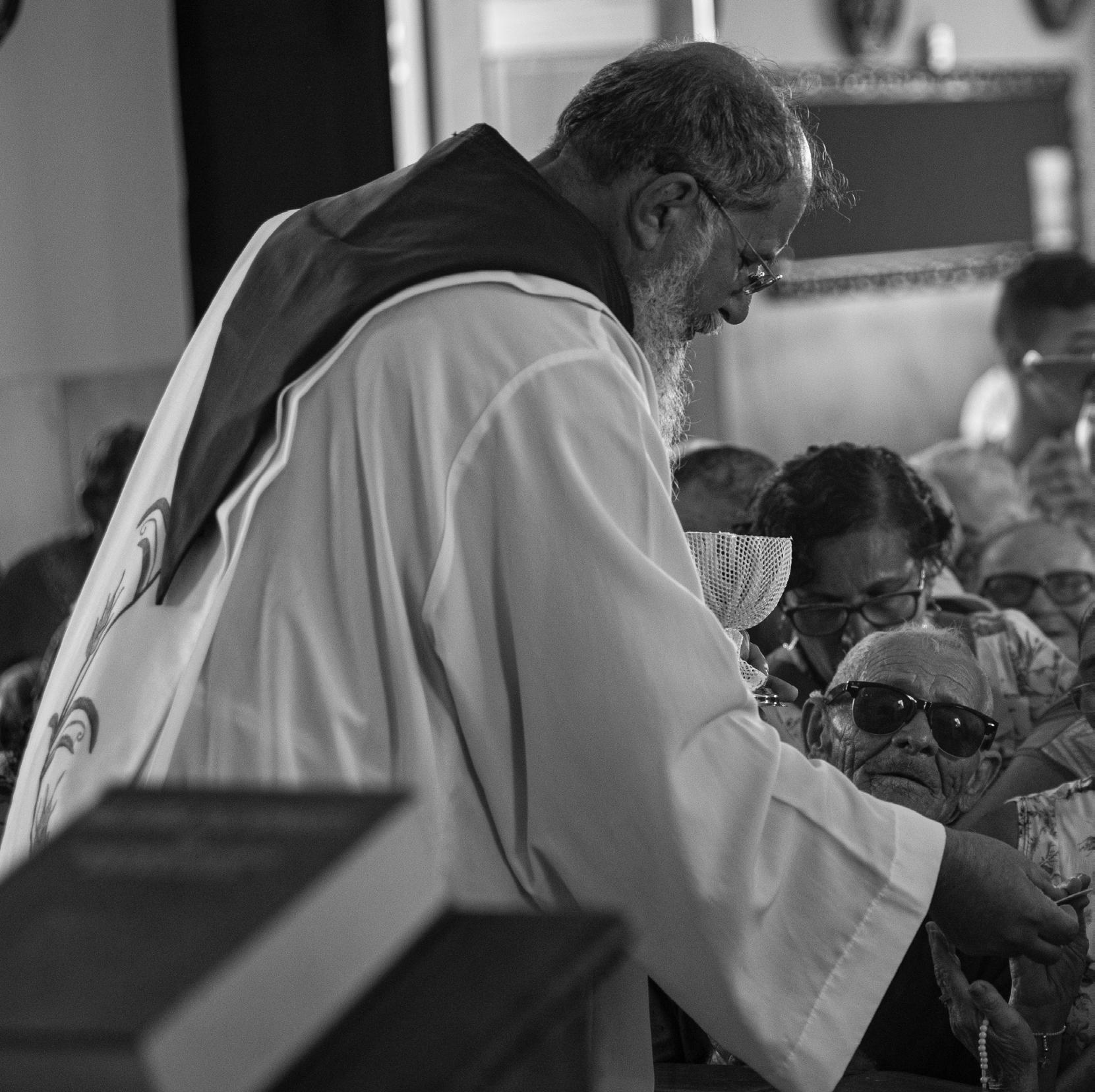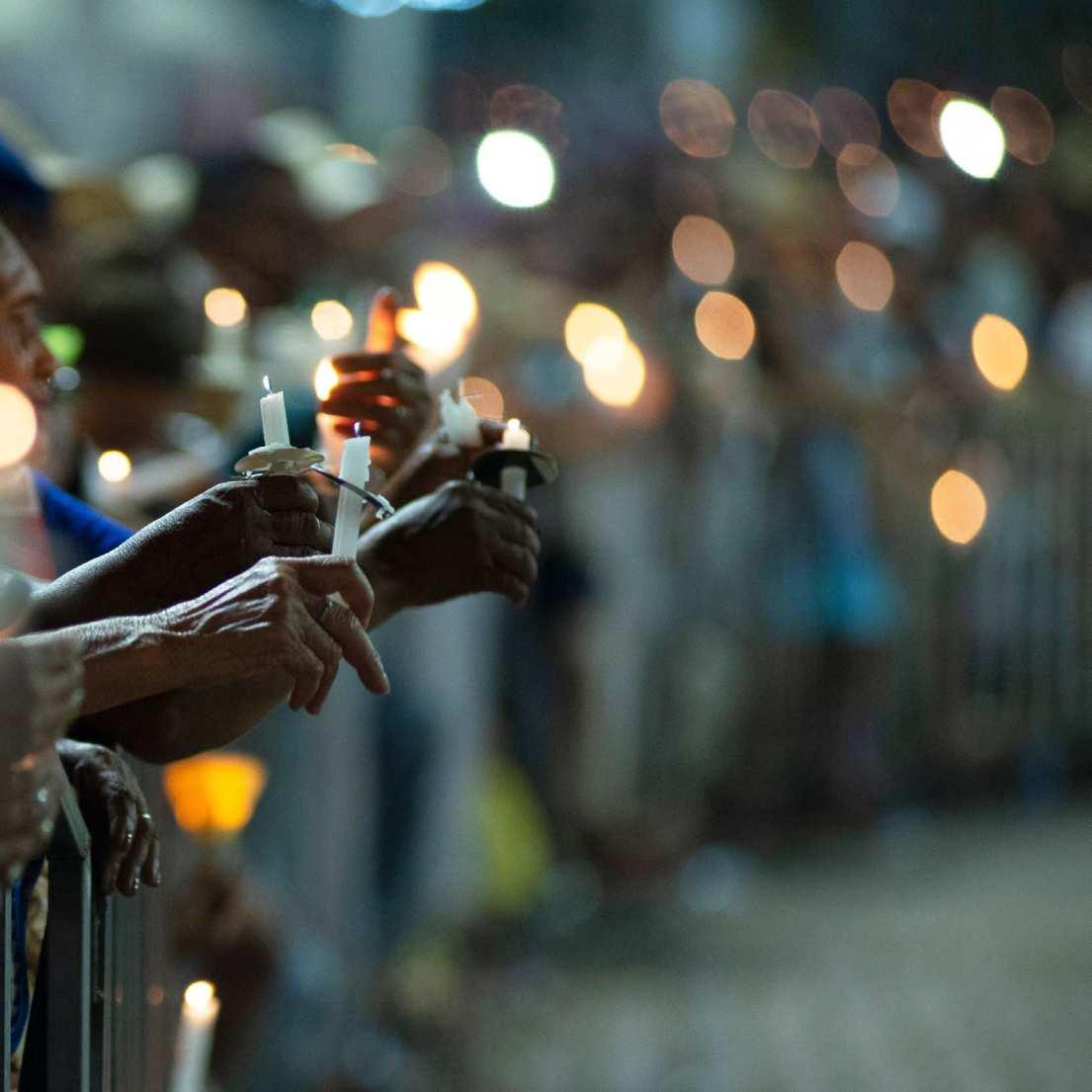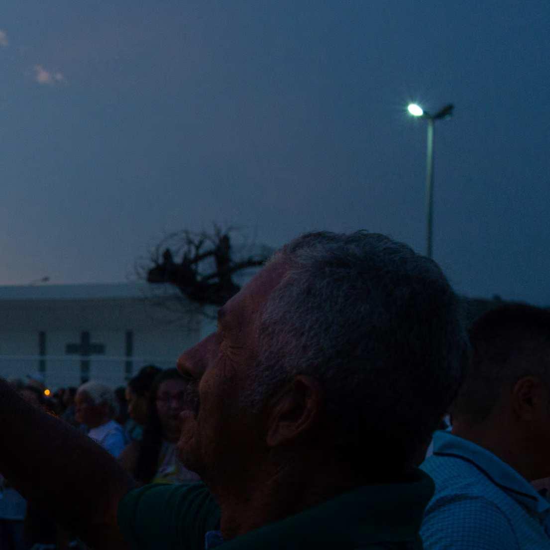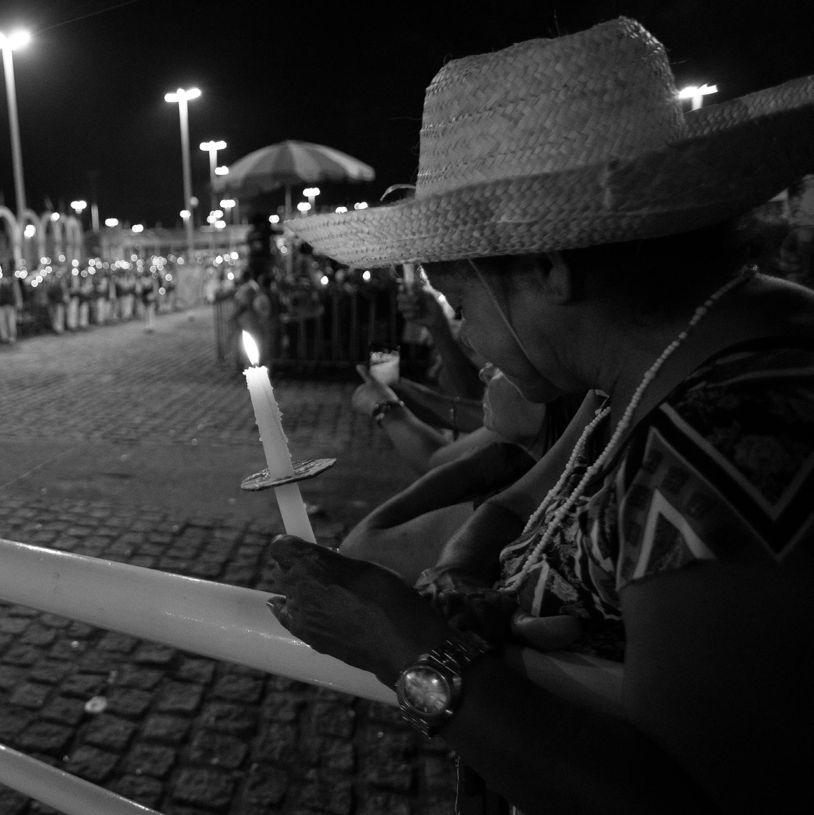 Nordeste, e do Brasil, esculpido pela luz e pela sombra, rostos iluminados pelo brilho das suas velas, sem dúvida a emanação externa da fé interna, da esperança, e mesmo do êxtase espiritual. A câmara de Elinaldo Meira, sensível e de busca, guia-nos por este caminho de ritual, tradição e comunidade até um altar erguido nos degraus da Igreja do Socorro. Juntamente com o ritual à luz das velas centrado em torno de Nossa Senhora das Luzes, testemunhamos também a realização da Eucaristia e a sua importância refletida nos rostos apaixonados dos peregrinos.