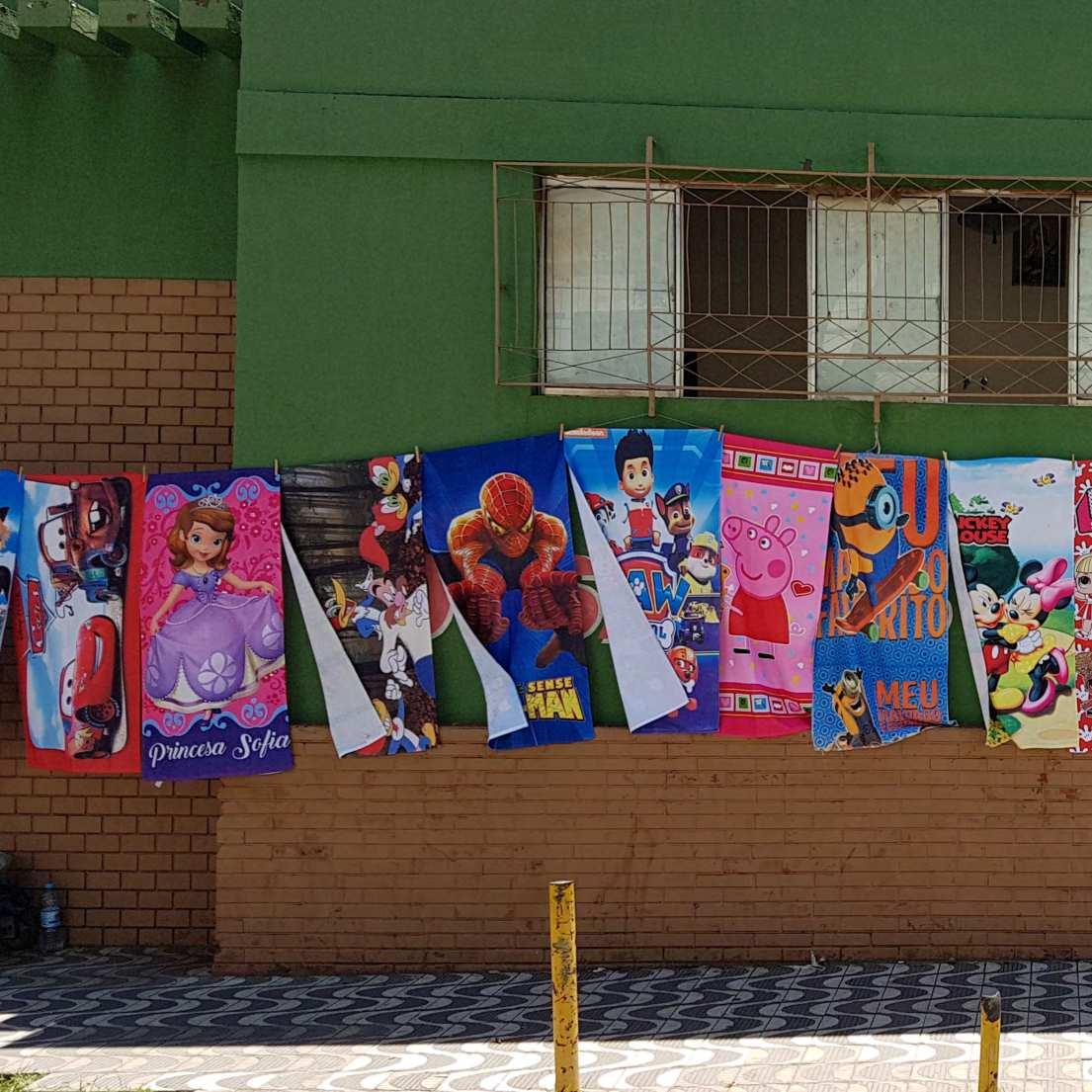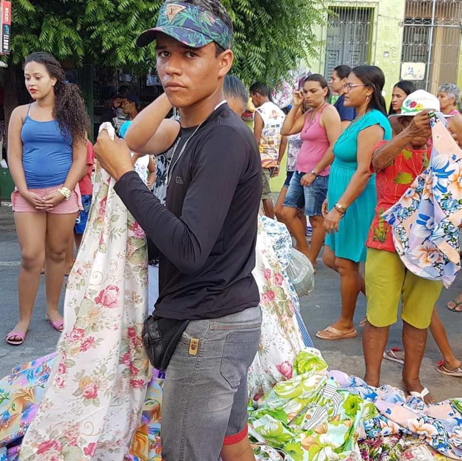 Venda de toalhas para banho durante os dias de festividade na Av. Dr. Floro Bartolomeu, esquina com Rua Padre Cícero./ Sale of towels for bathing during the days of festivities at Doctor Floro Bartolomeu Avenue, corner with Father Cícero Street.