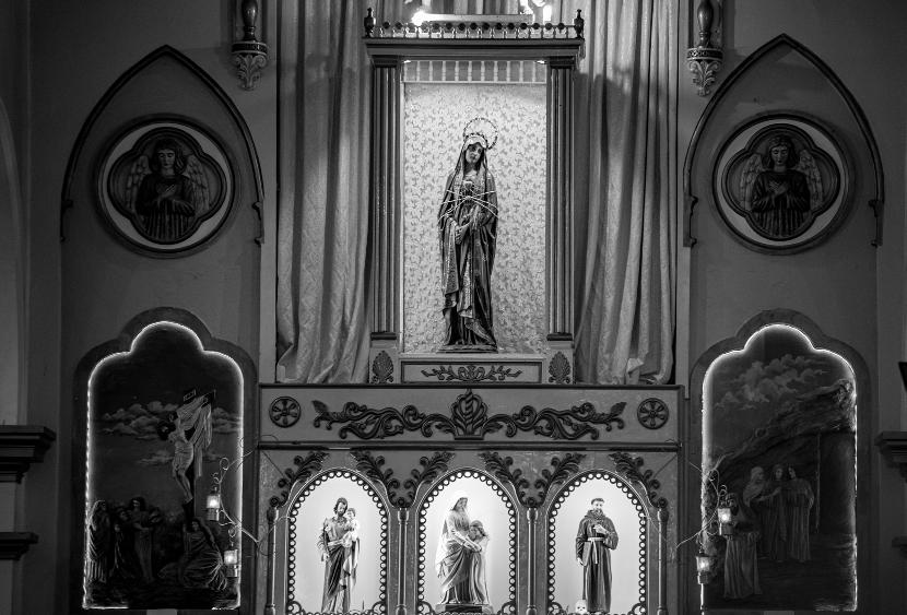 Nicho destinado ao depóstio de ex-votos em ambiente interno da Basílica de Nossa Senhora das Dores./ Niche for the deposit of ex-votos in the internal environment of the Basilica of Our Lady of Sorrows.