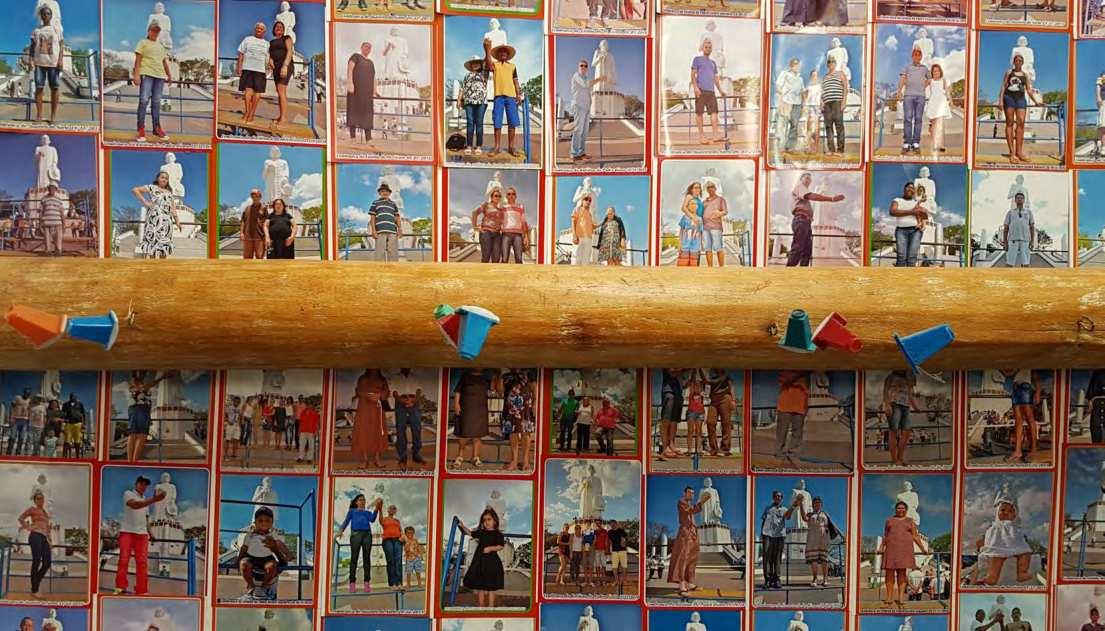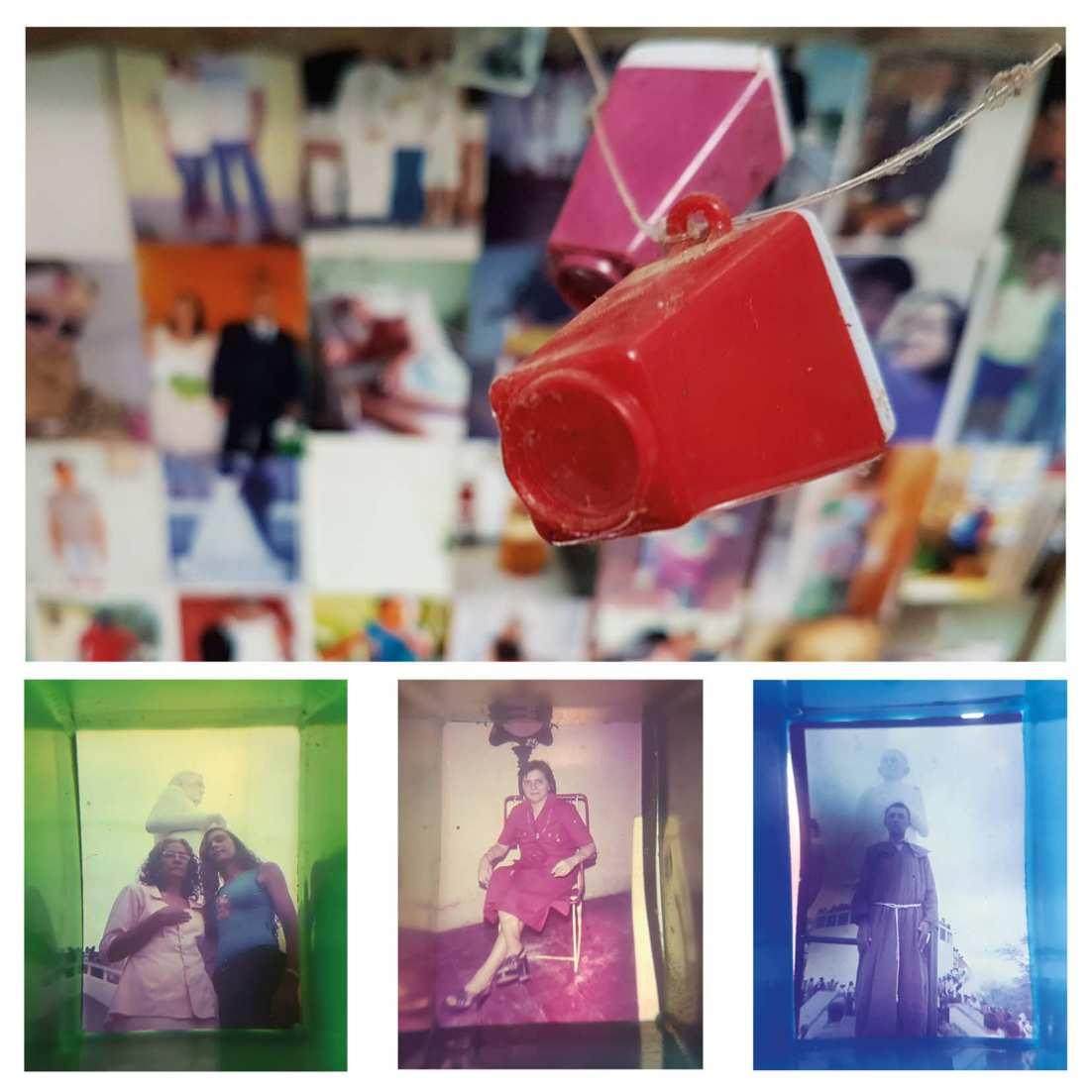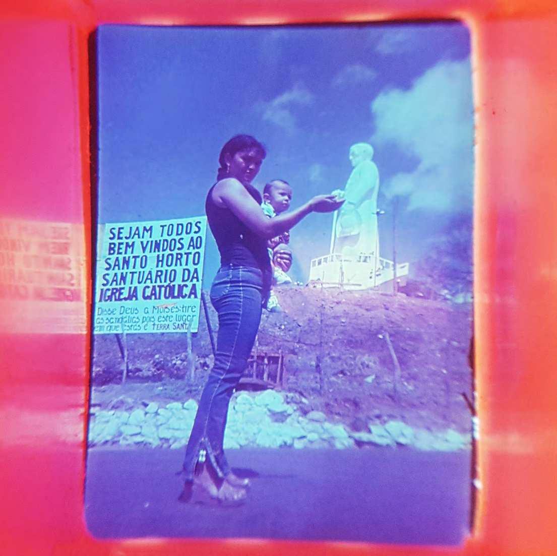 Monóculos fotográficos, também chamados de monoclinho, binoclinho. Na parte inferior da página, imagens registradas na película realizadas por fotógrafos atuantes na Colina do Horto, tradição que remonta desde a inauguração da Estátua, monumento a Padre Cícero, em 1969. A estátua possui 30 metros de altura no total com a base./ Photographic monocles (It’s a photographic souvenir). At the bottom of page, images recorded on film taken by photographers working at Horto Hill, a tradition that goes back to the inauguration of the Statue, a monument to Father Cícero, in 1969. The statue is 30 meters high in total with the base.