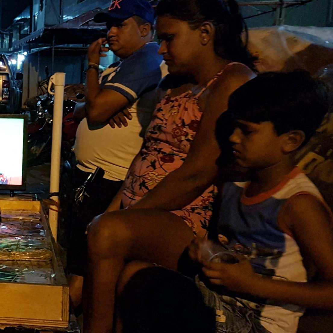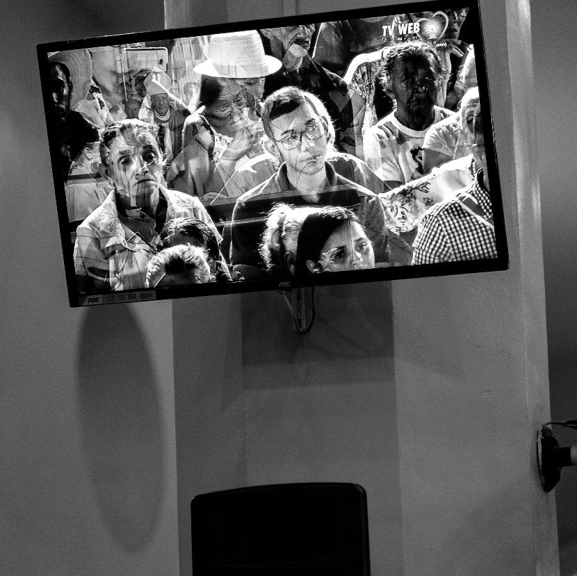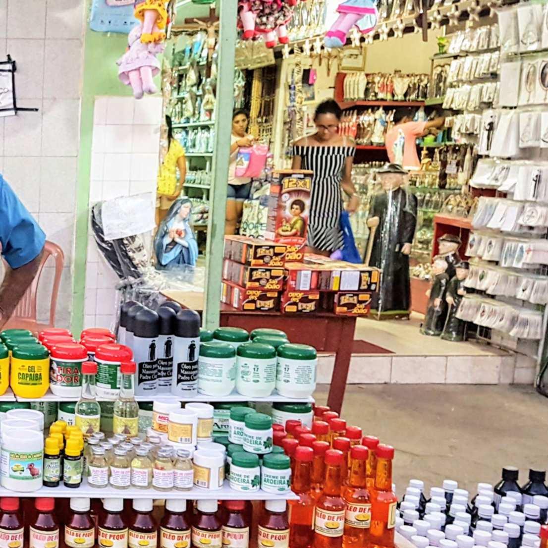 Perhaps with such a prayerful yet popular song on our lips and in our hearts, we continue along this journey through Meira’s lens. We move beyond the confines of religious ritual and festival, from sacred to profane. Just as in the annual St. John’s festival in the Northeast, the reverberations of the religious calendar extend well beyond sacred gatherings and rituals. We see images of musical performance (traditional drum-and-fife bands, and other musicians that might play anything from the regional country music of forró to pop to religious music, or some combination thereof); of dance; of commerce and tourism tied to religious devotion and celebration; and of the televised transmission of the religious festival itself. While aspects of this festival and this community appear timeless, we also see that we are in a modern, capitalist society of the twenty-first century with all its vices and virtues. A rainbow of colors greets our eyes in the clothing, religious iconography, umbrellas and hammocks on display in the streets and shops of Juazeiro do Norte.