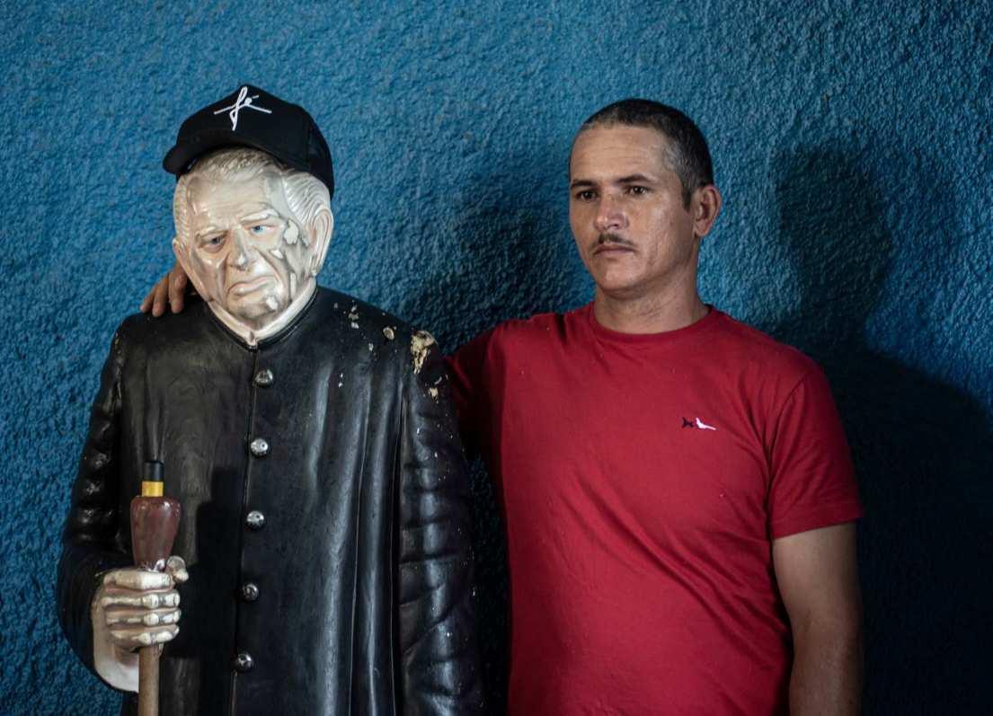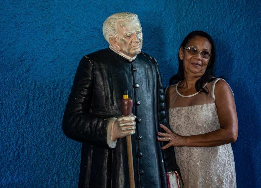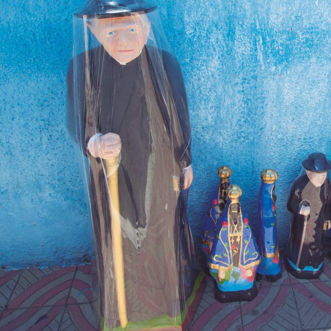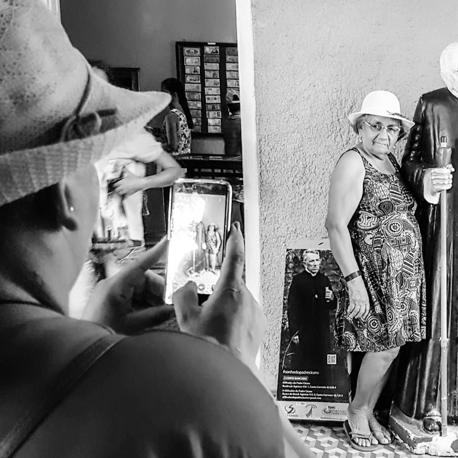 p. 206 a 219 Nas dependências da Casa Museu Padre Cícero. A experiência de uma museu que é lugar sagrado, que é a casa do Padrinho, que é ponto de encontro. Romeiras posam ao lado da escultura do padre./ On the premises of the Father Cícero Museum House. The experience of a museum that is a sacred place, that is the house of the Godfather, that is a meeting place. Devotees pose beside the sculpture of the priest.