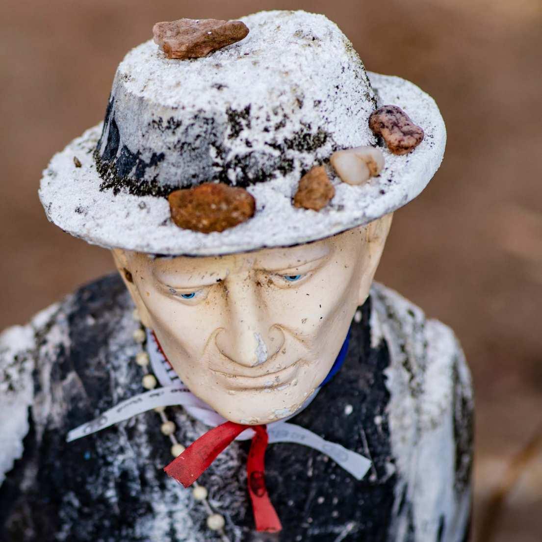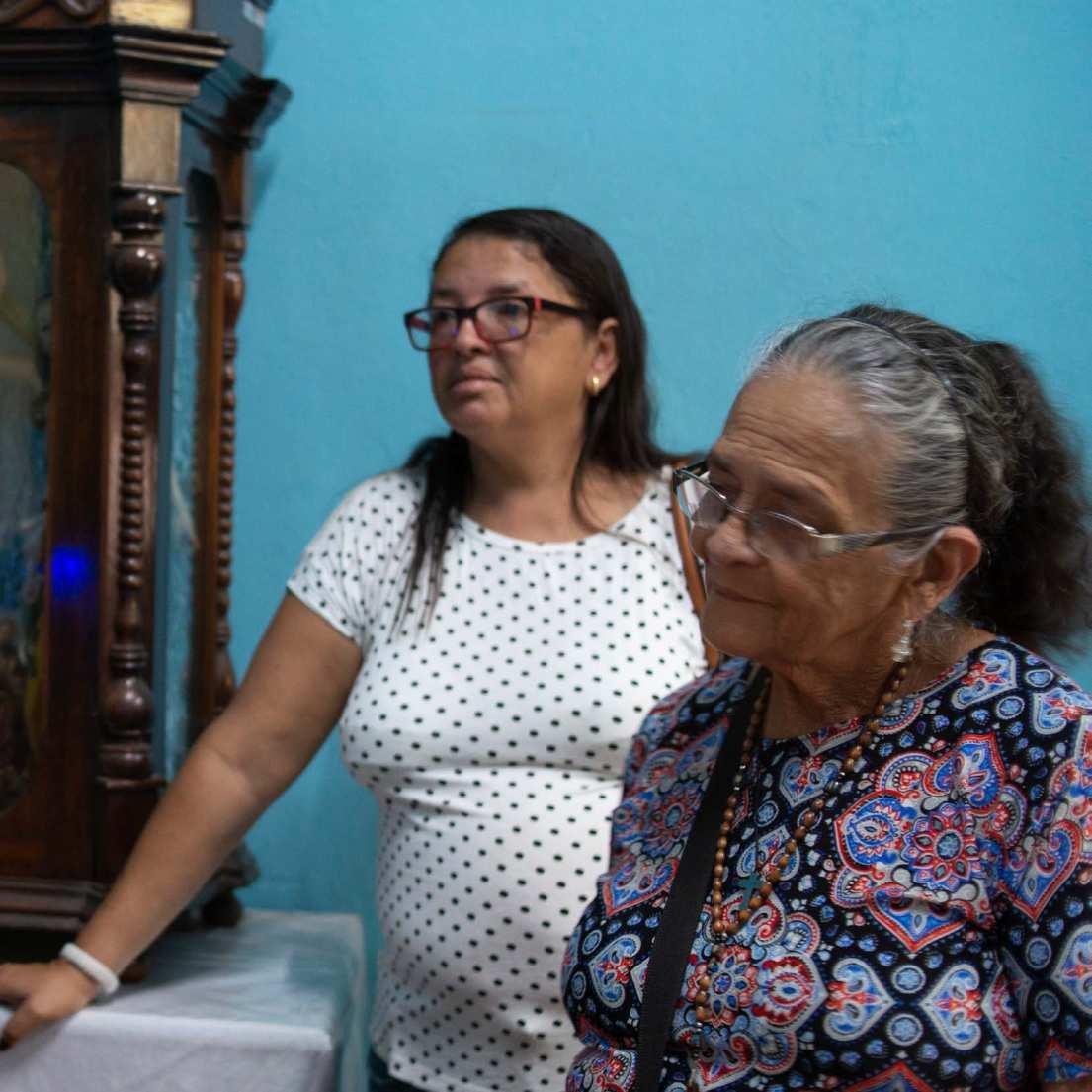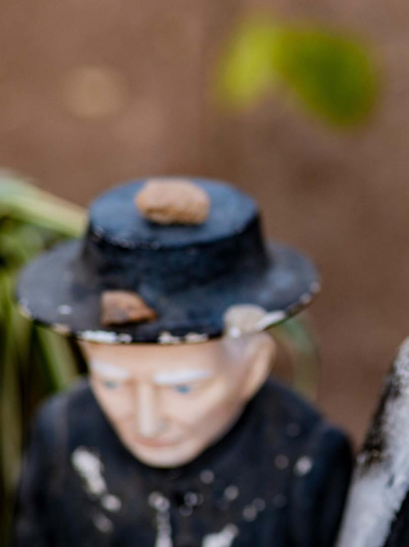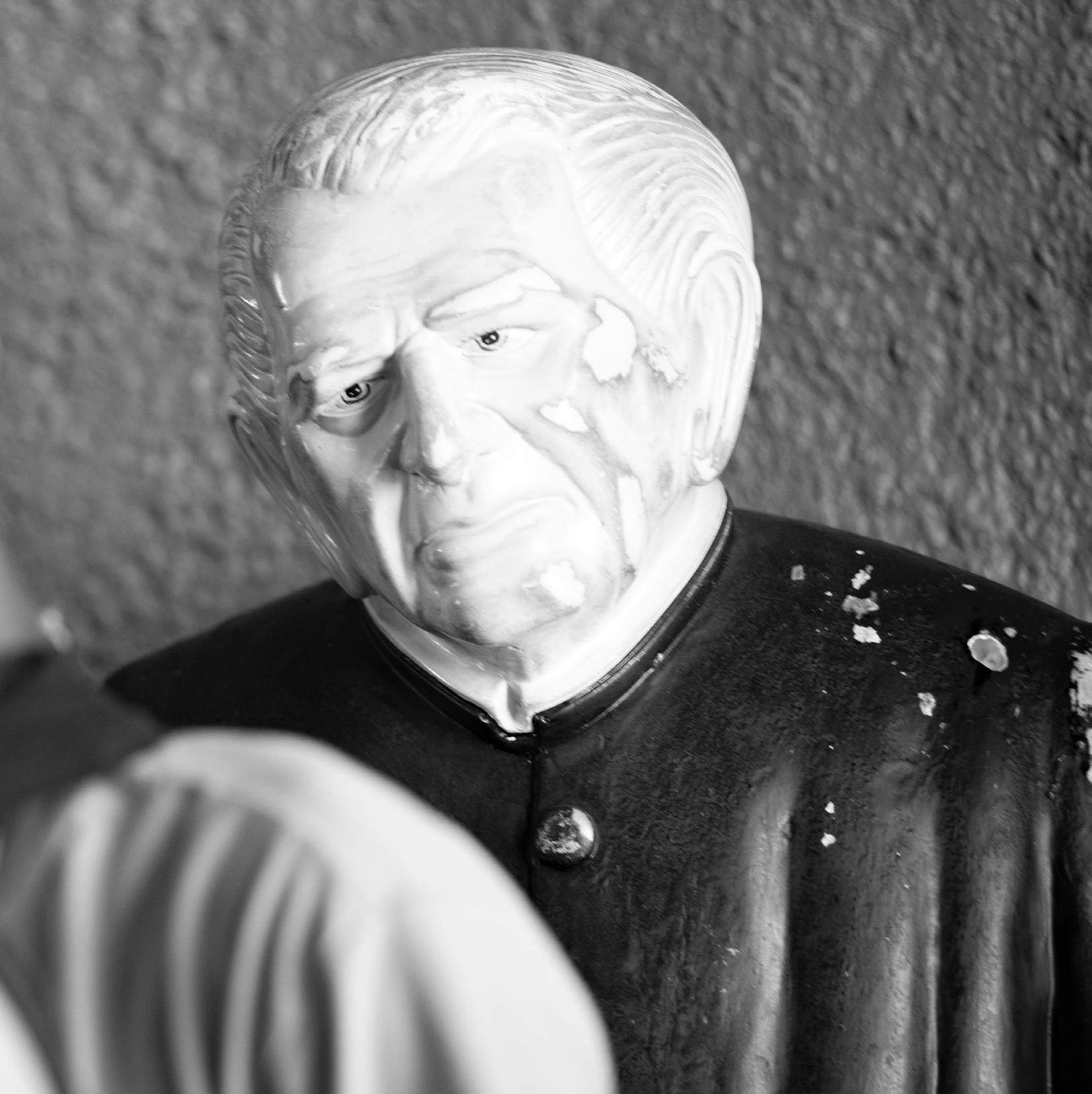 p. 206 a 219 Nas dependências da Casa Museu Padre Cícero. A experiência de uma museu que é lugar sagrado, que é a casa do Padrinho, que é ponto de encontro. Romeiras posam ao lado da escultura do padre./ On the premises of the Father Cícero Museum House. The experience of a museum that is a sacred place, that is the house of the Godfather, that is a meeting place. Devotees pose beside the sculpture of the priest.