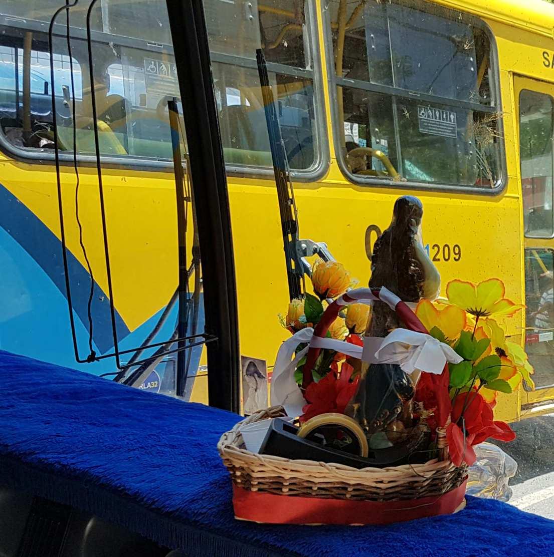 Decoração em ônibus de romaria./ Decoration in pilgrimage buses.