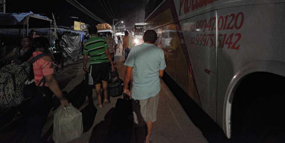 “Adeus, adeus... até para o ano, se Deus quiser!”, hora da despedida dos romeiros, ao fim da última missa da Festa das Candeias. Buzinas e saudações./ “Goodbye, goodbye... see you next year, God willing!”, time for the farewell of the pilgrims, at the end of the last mass of the Candeias Feast. Honking horns and greetings.